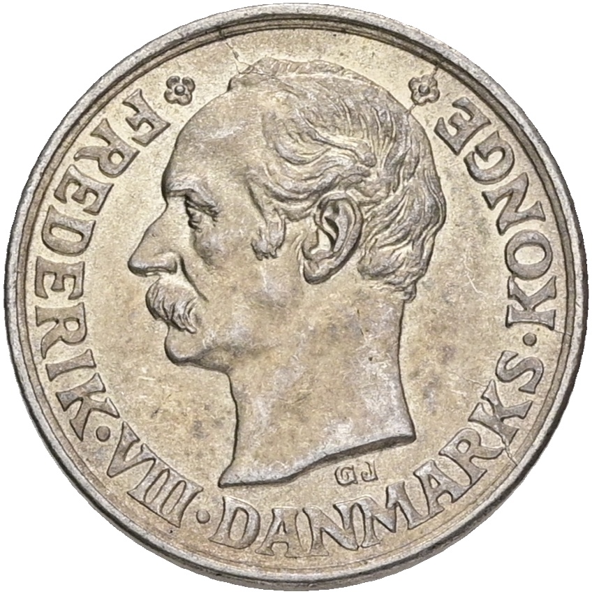 Frederik VIII, 25 øre 1907, H 4, Sieg 2, kv. 01-1+, let aftørret.