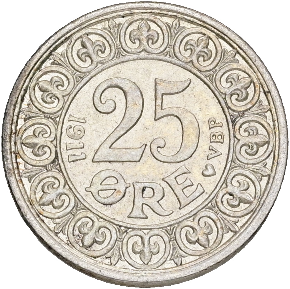 Frederik VIII, 25 øre 1911, Sieg 2, H 4, kv. 01-1+