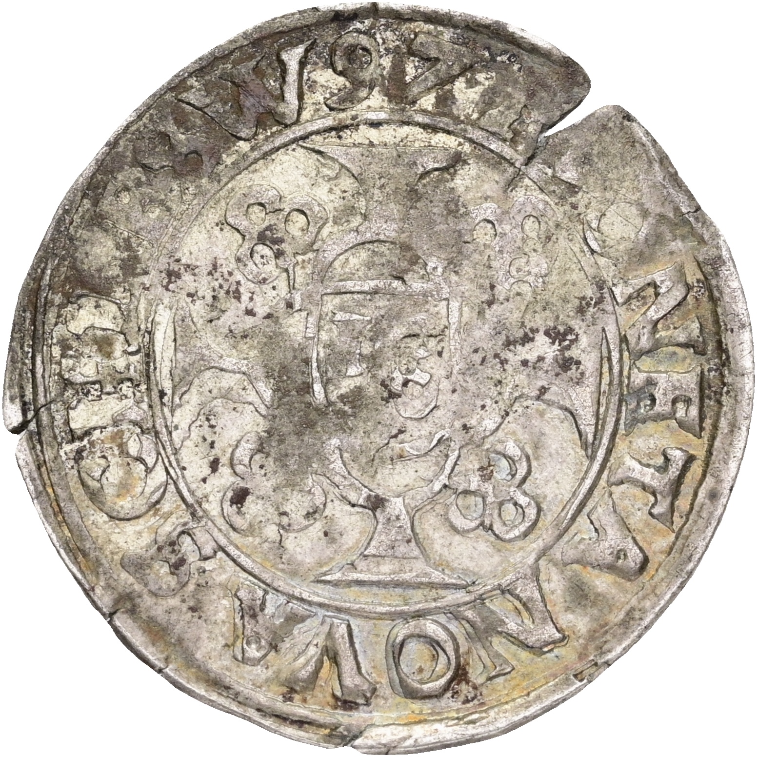 German States, Schleswig-Holstein-Gottorp, Johan Adolf, 1/16 Rigsdaler / Dobbeltskilling 1897, Sieg 6.2, L 282, planchet flaws, VF-F
