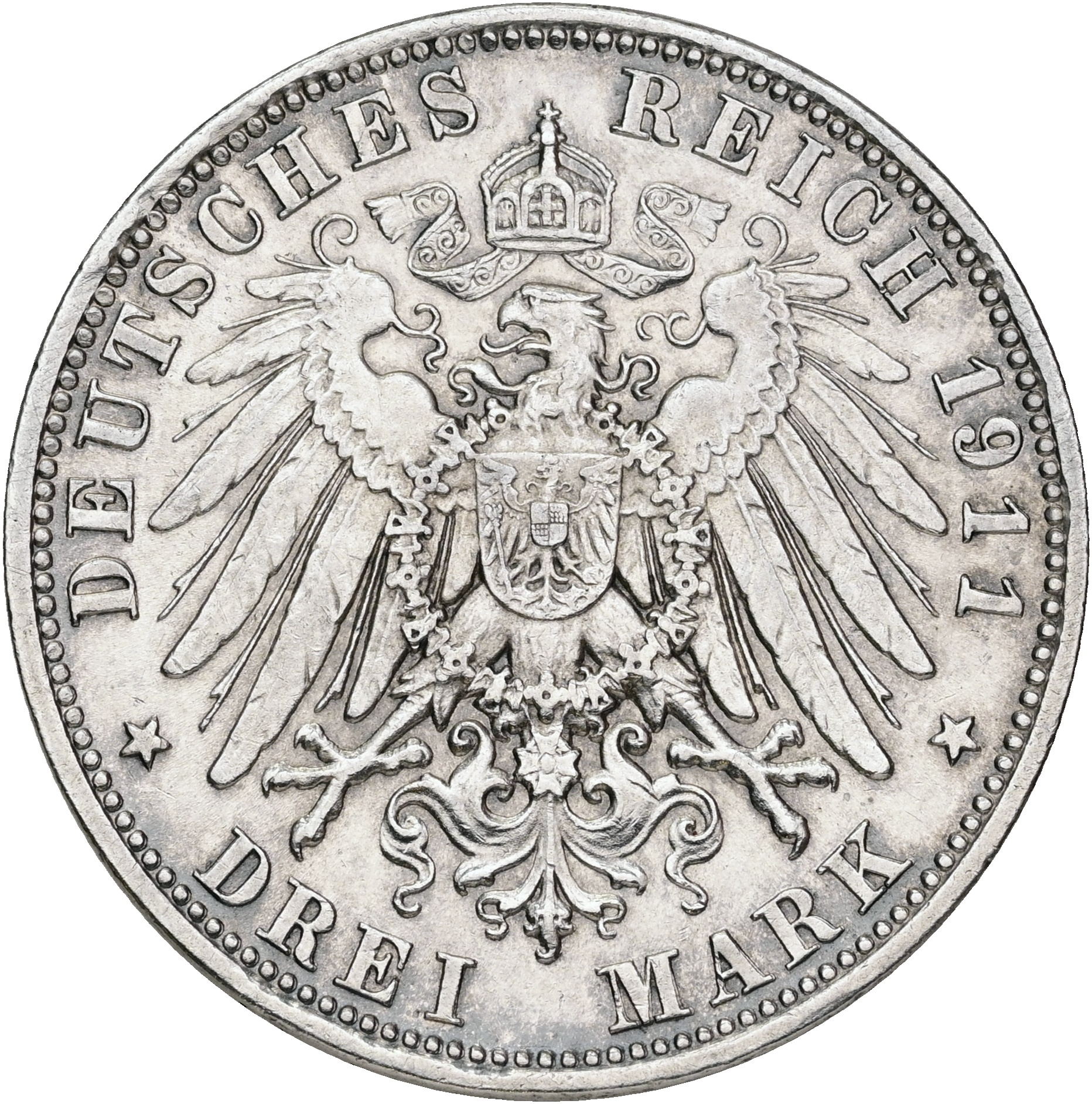 Germany, Bavaria (Bayern), Otto, 3 Mark 1911D, KM 996, VF