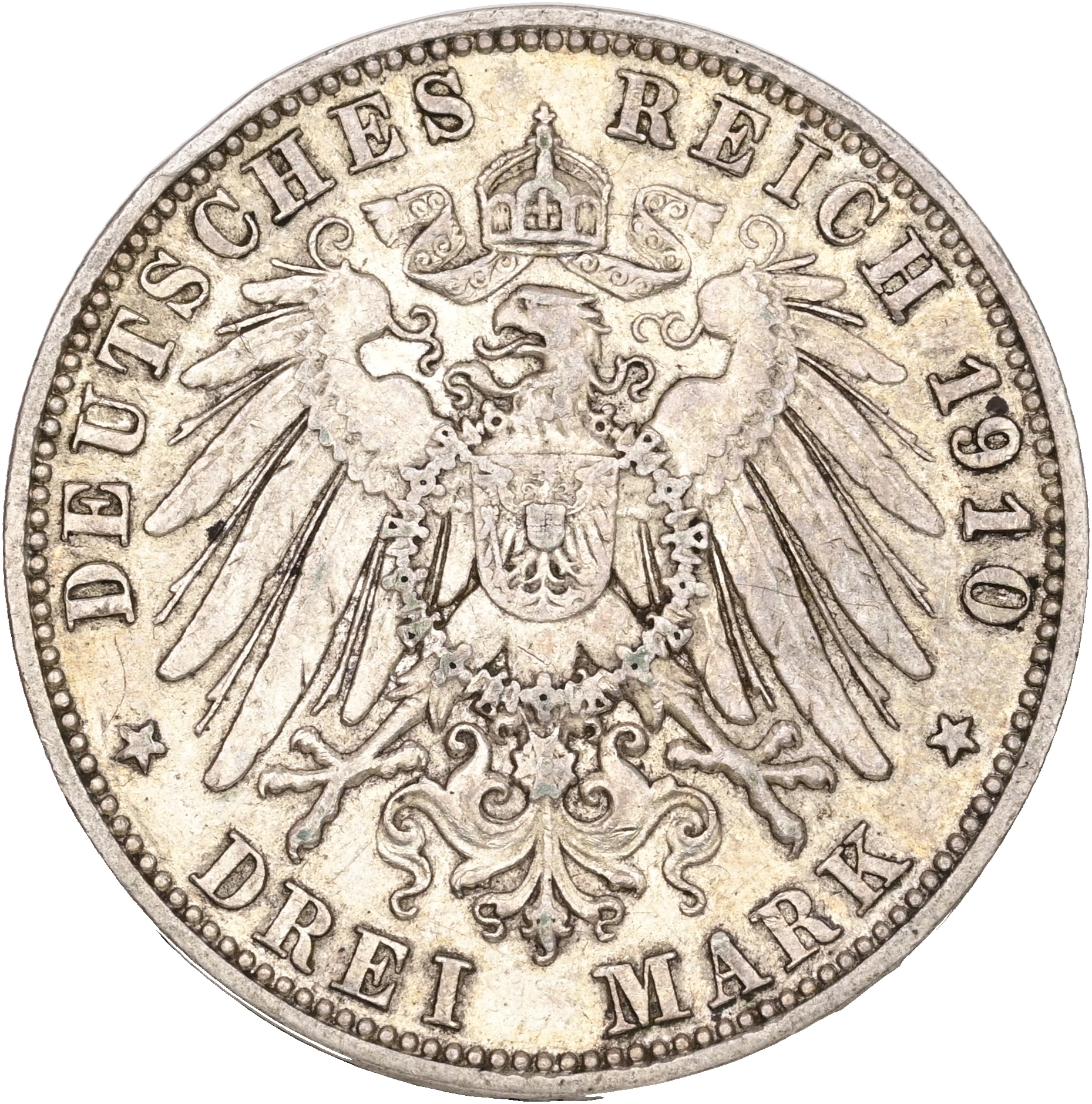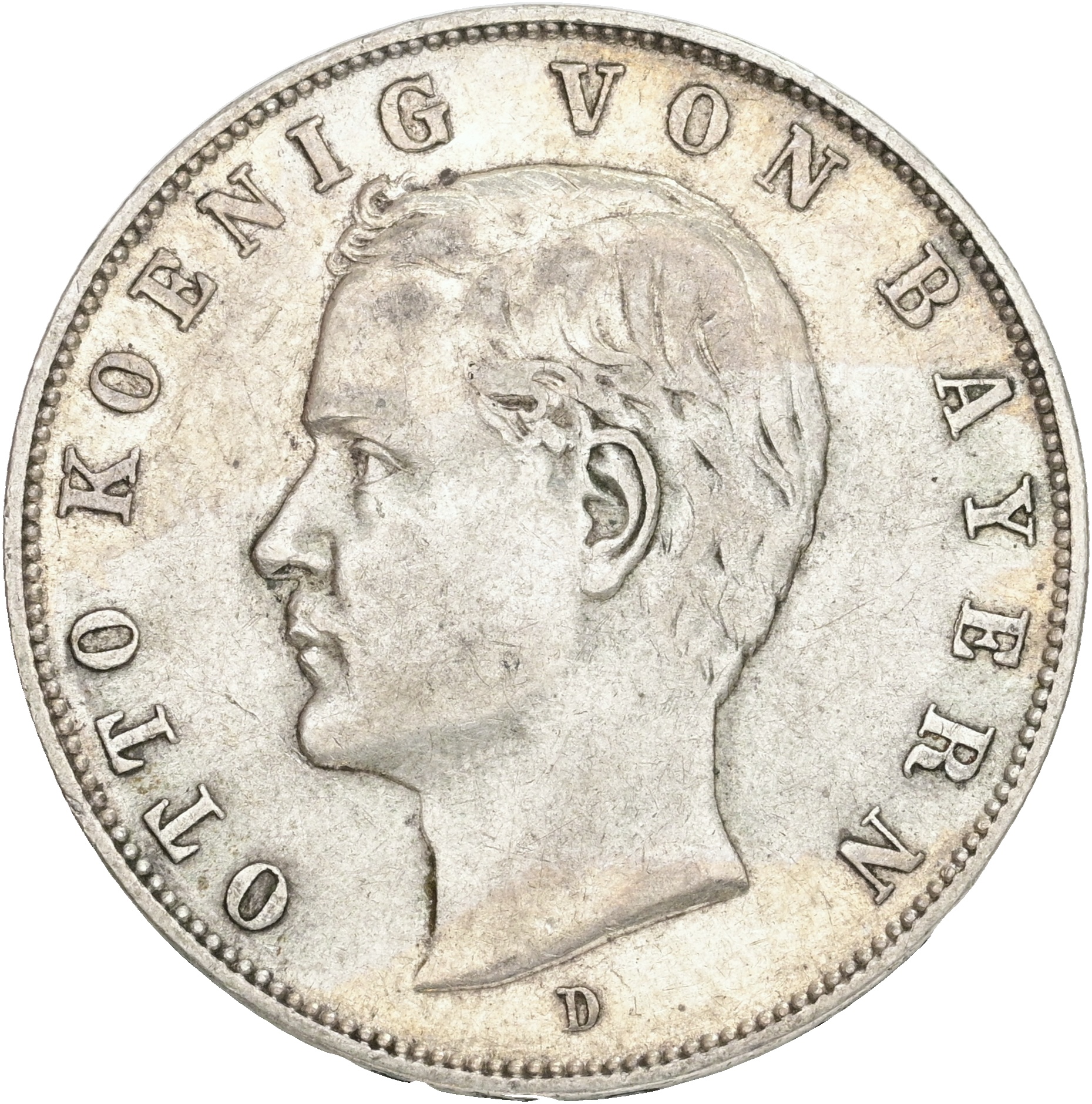 Germany, Bavaria, Otto, 3 Mark 1910 D, KM 996, VF