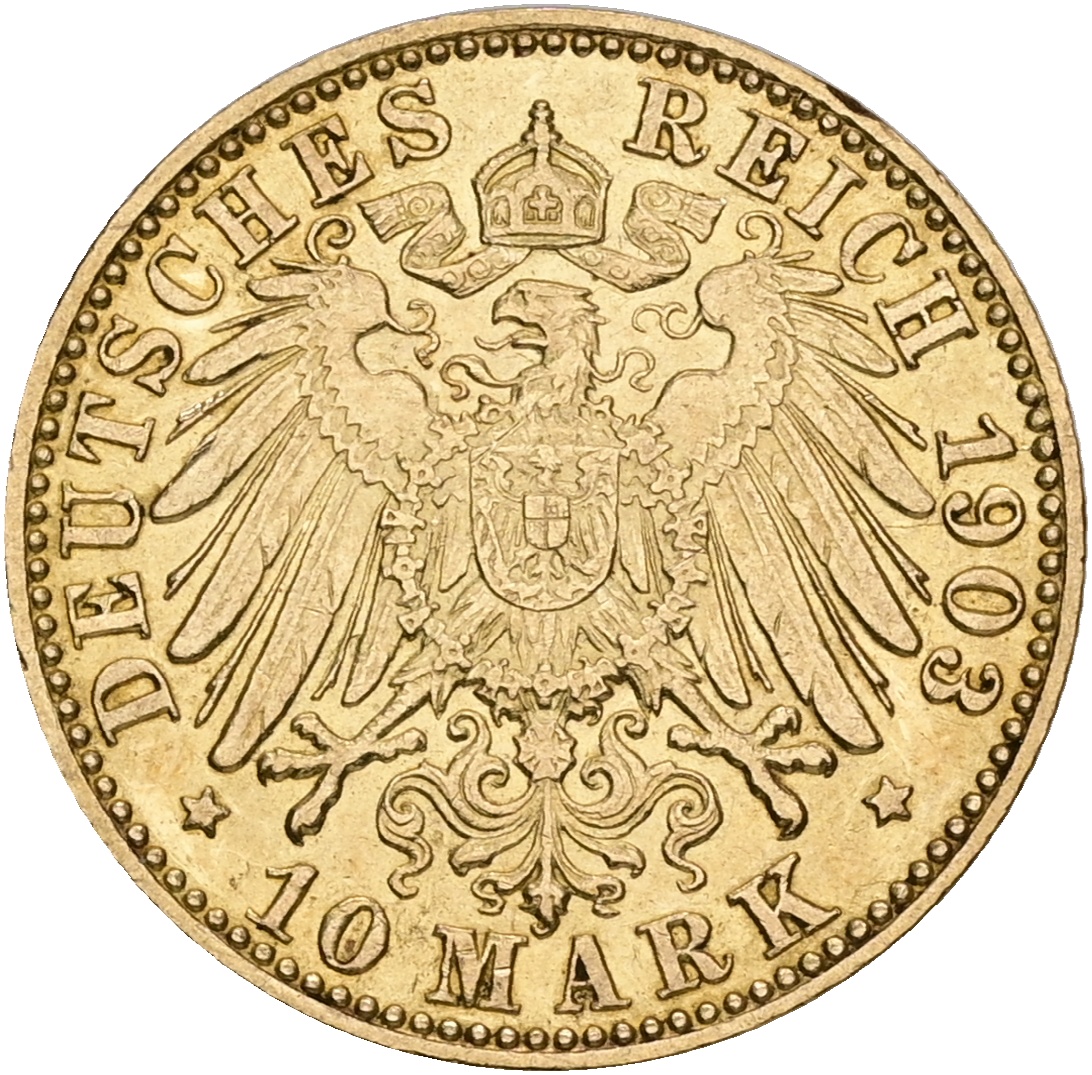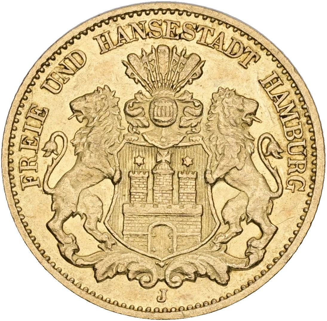 Germany, Hamburg, 10 Mark 1903 J, KM 608, F 3781, EF-VF