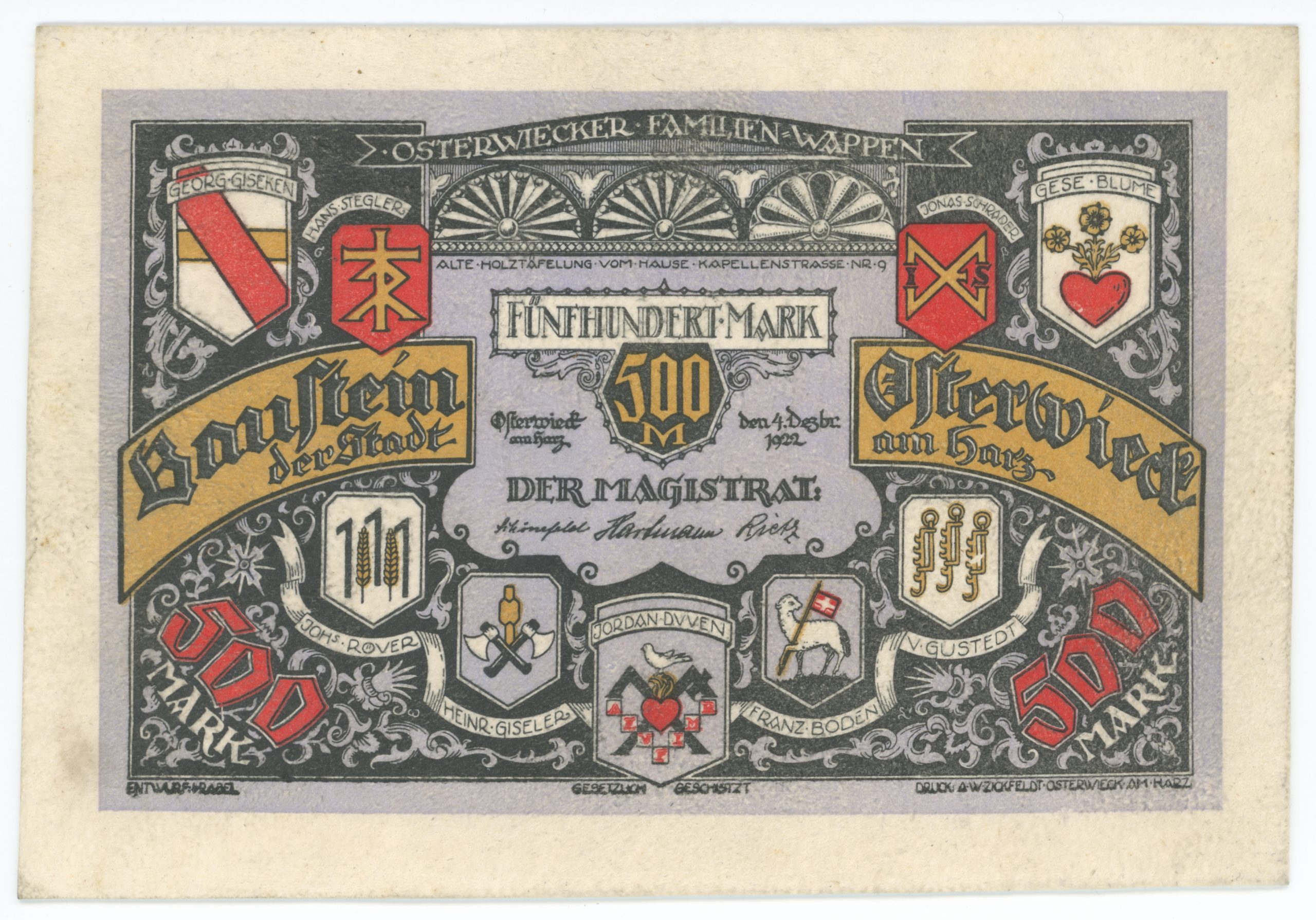Germany, Osterwieck am Harz, 500 Mark 1922, made of leather, EF