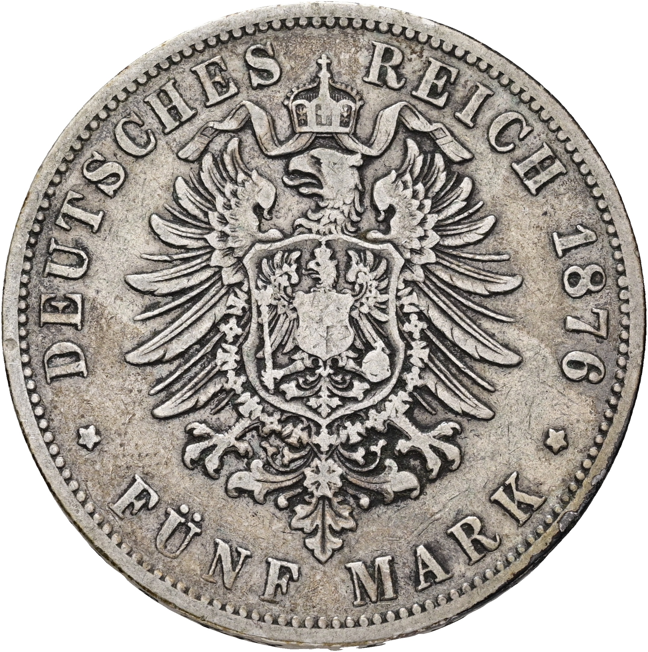 Germany, Preussen, 5 Mark 1876 B, KM 503, VF-F