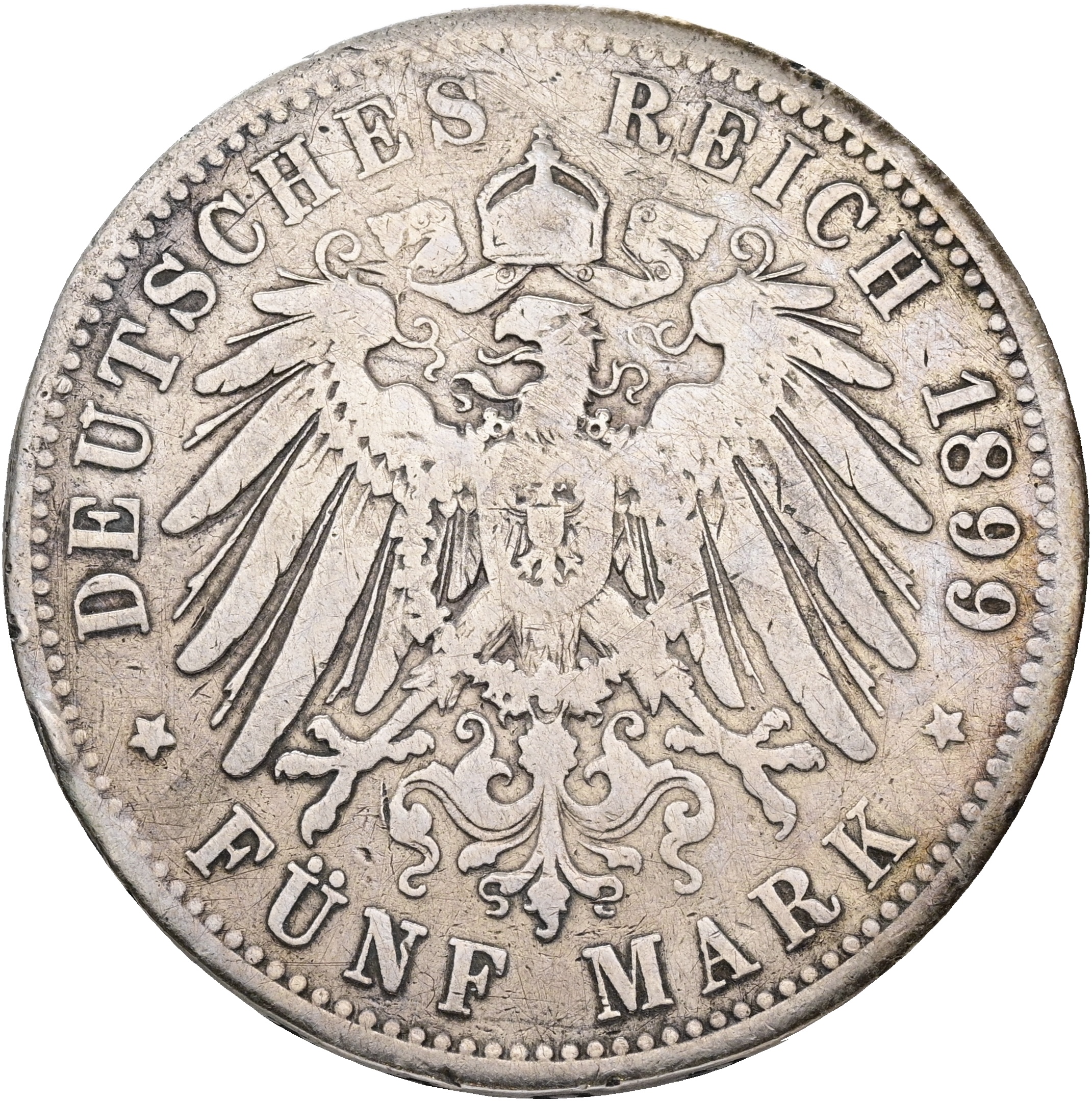 Germany, Preussen, 5 Mark 1899 A, KM 523, F, cleaned