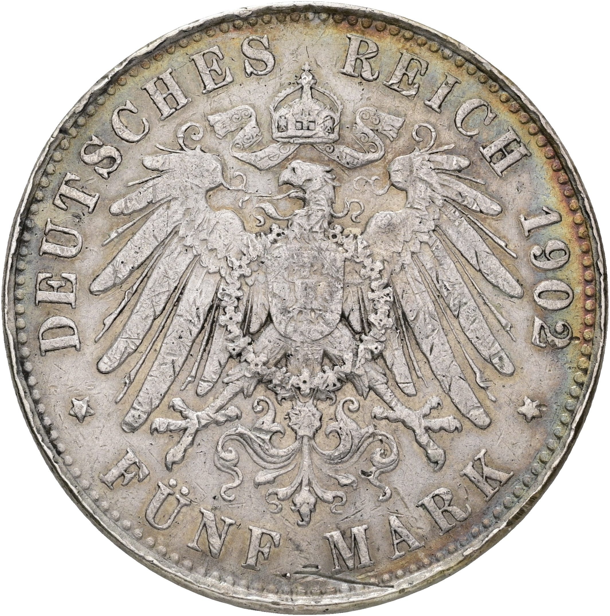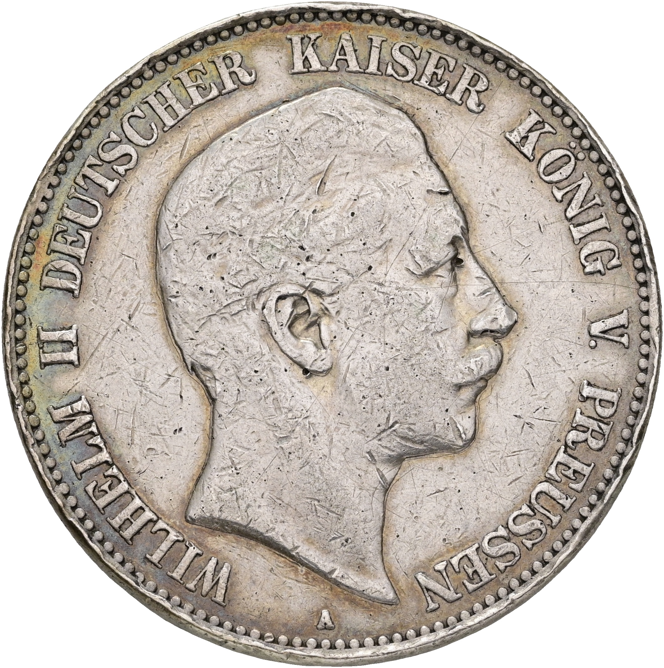 Germany, Preussen, 5 Mark 1902 A, KM 523, VF-F, tooled on edge (inscription removed)