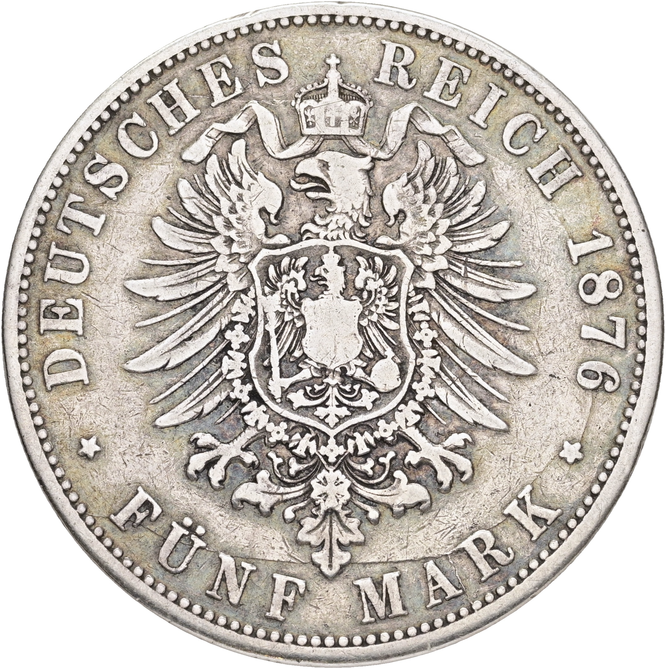 Germany, Prussia (Preussen), 5 Mark 1876 C, KM 503, VF-F