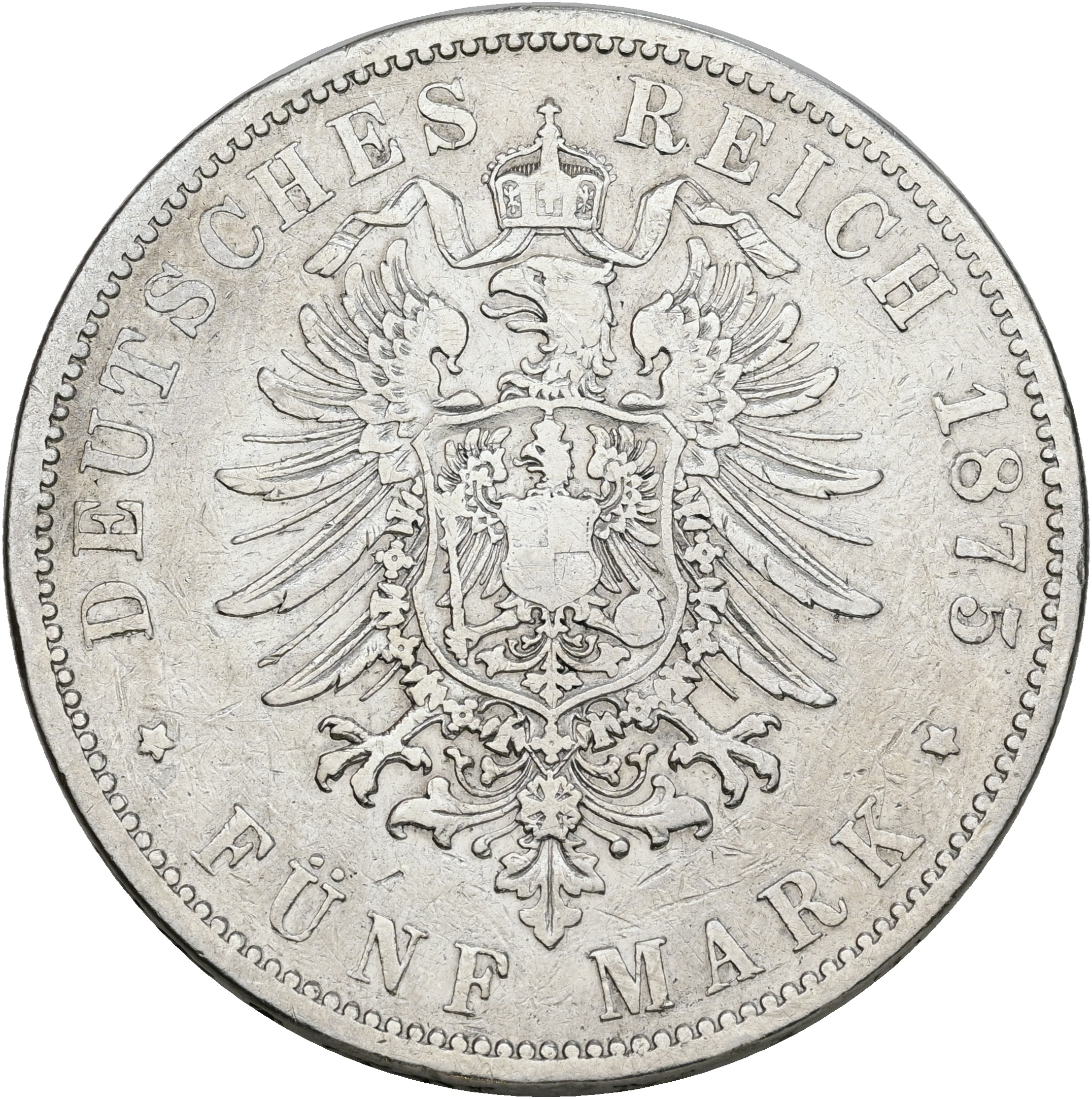 Germany, Prussia, Wilhelm I, 5 mark 1875 B, KM 503, F