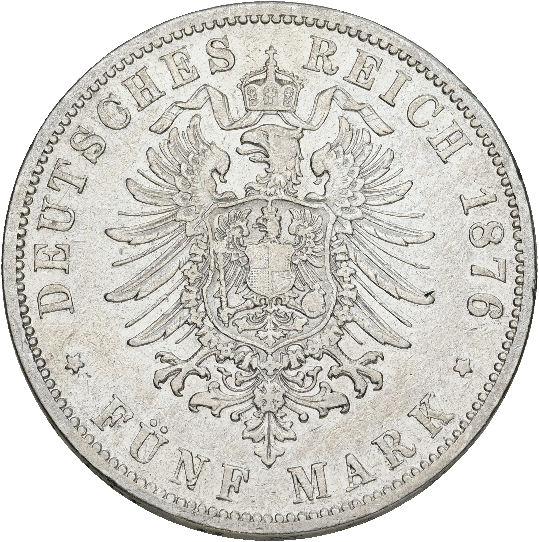 Germany, Prussia, Wilhelm I, 5 mark 1876 B, KM 503, F