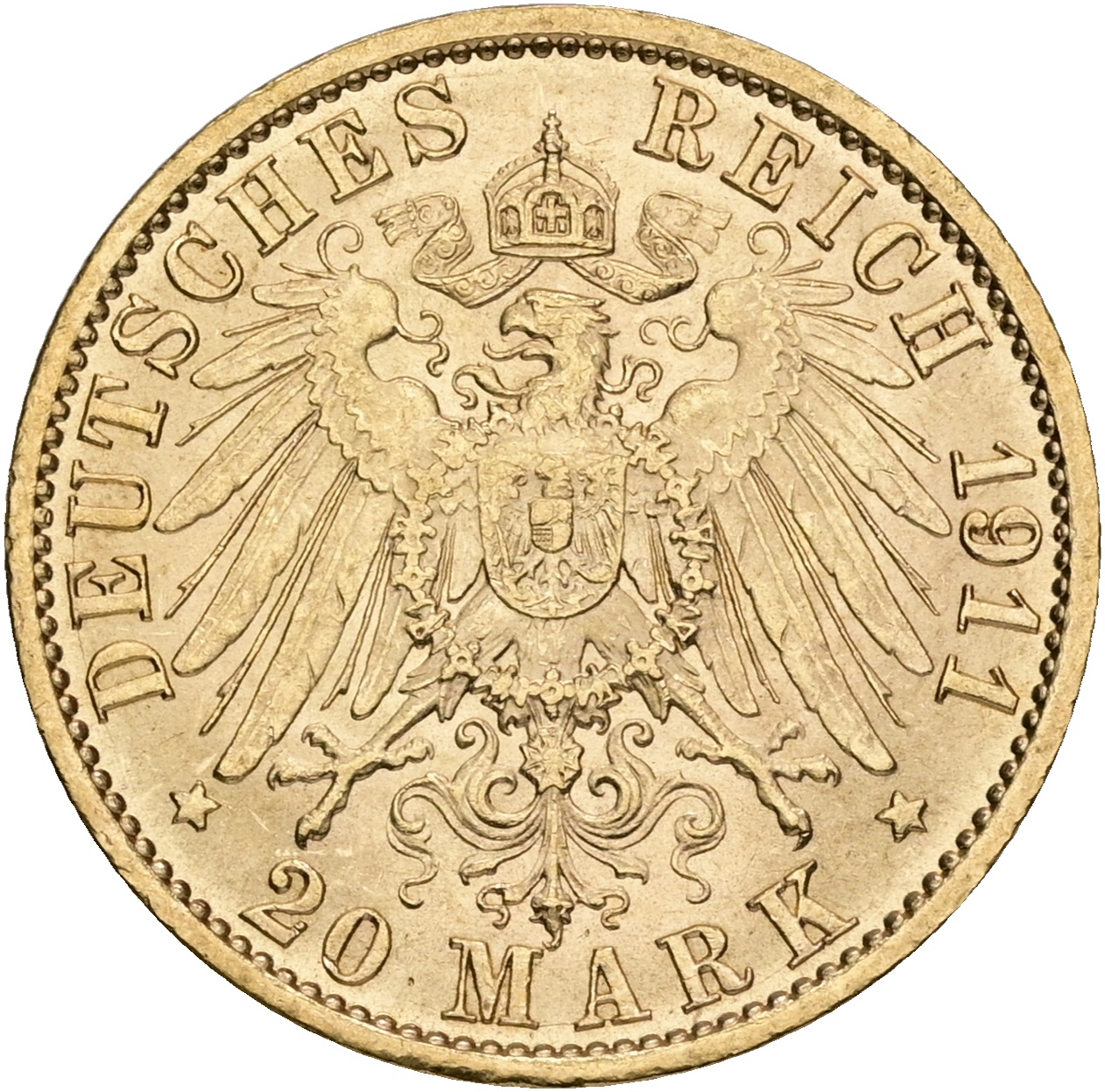 Germany, Prussia, Wilhelm II (1888-1918), 20 Mark 1911 A, KM 521, F 3831, EF/AU