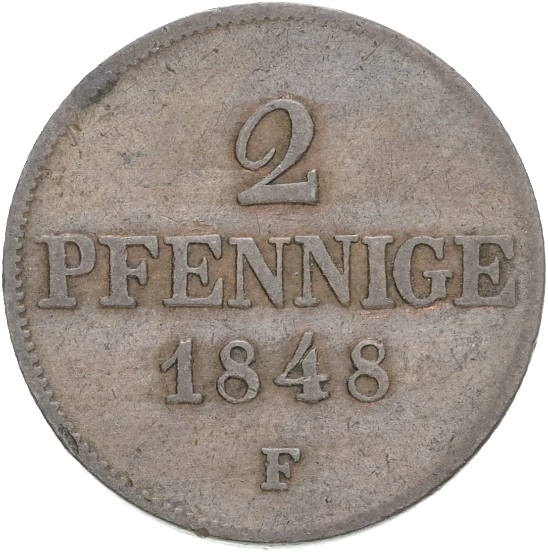 Germany, Saxony, Friedrich August II (1836-1854), 2 Pfennige 1848, KM 1157, VF-F