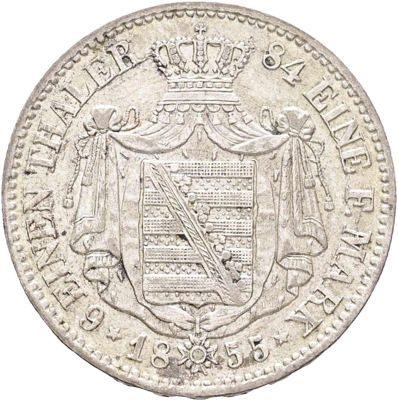Germany, Saxony, Johann (1854-1873), 1/6 Taler 1855, KM 1186, EF-VF