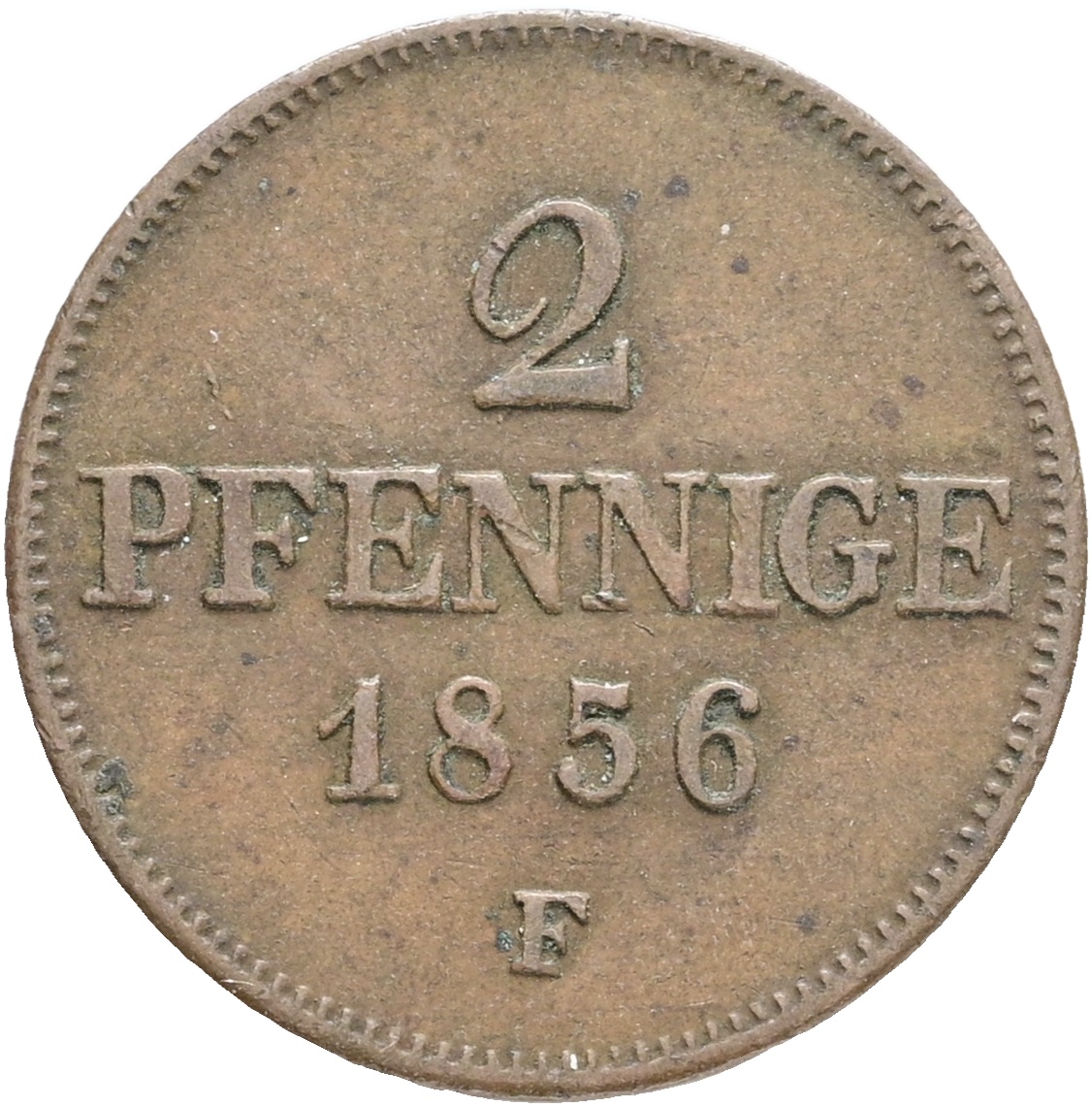 Germany, Saxony, Johann (1854-1873), 2 Pfennige 1856, KM 1185, VF