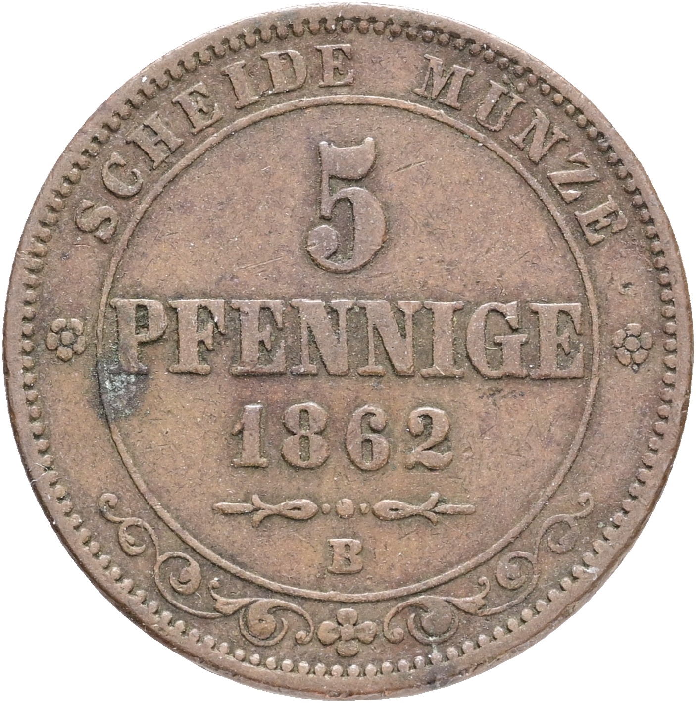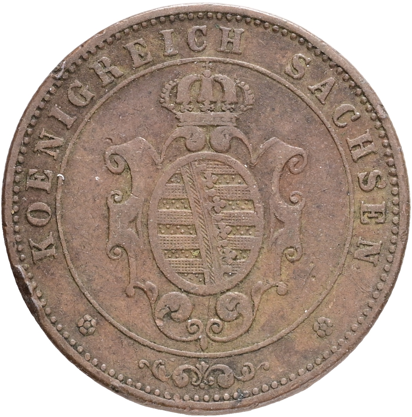 Germany, Saxony, Johann (1854-1873), 5 Pfennige 1862, KM 1218, VF-F, edge nicks.