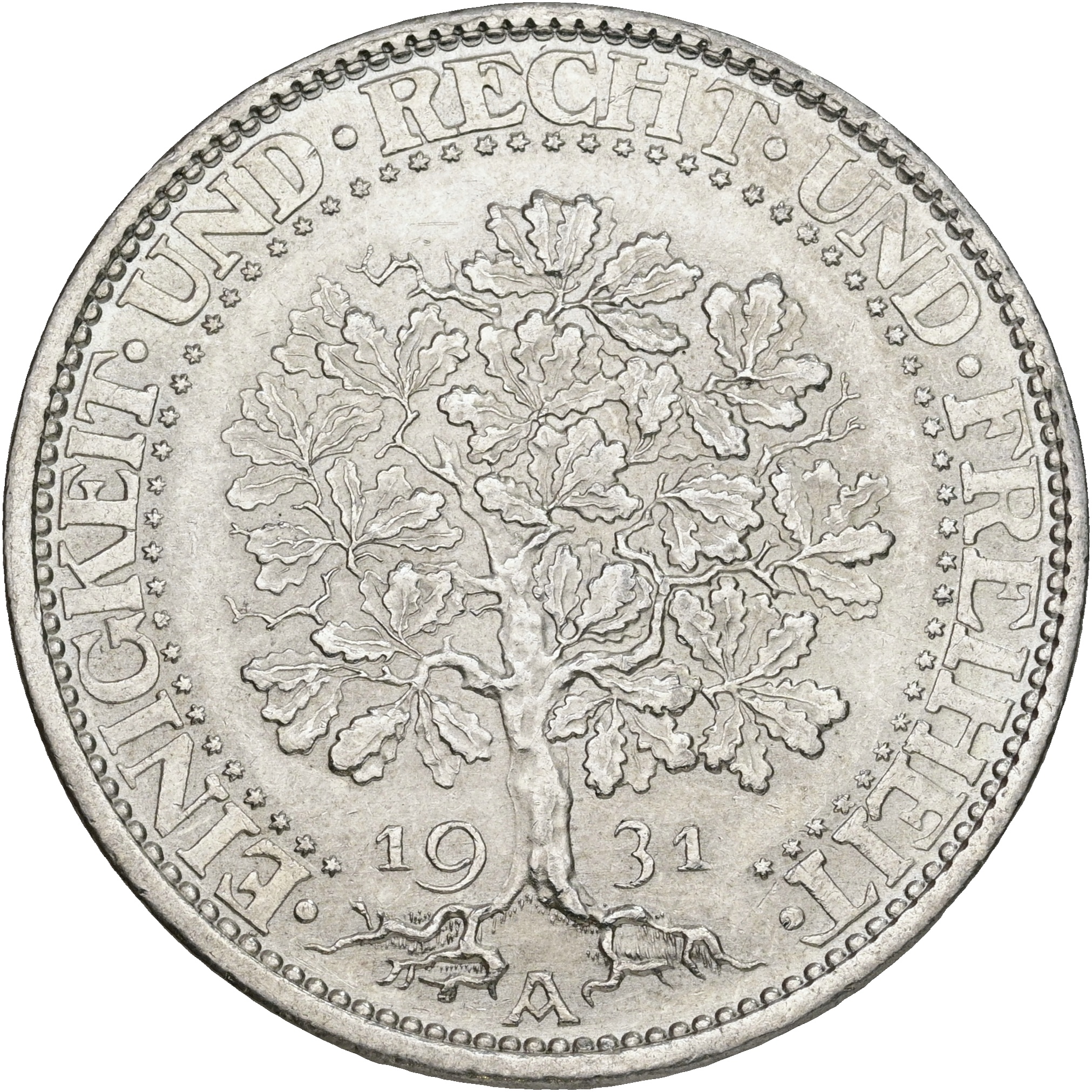 Germany, Weimar Republic, 5 Mark 1931 A, KM 56, UNC