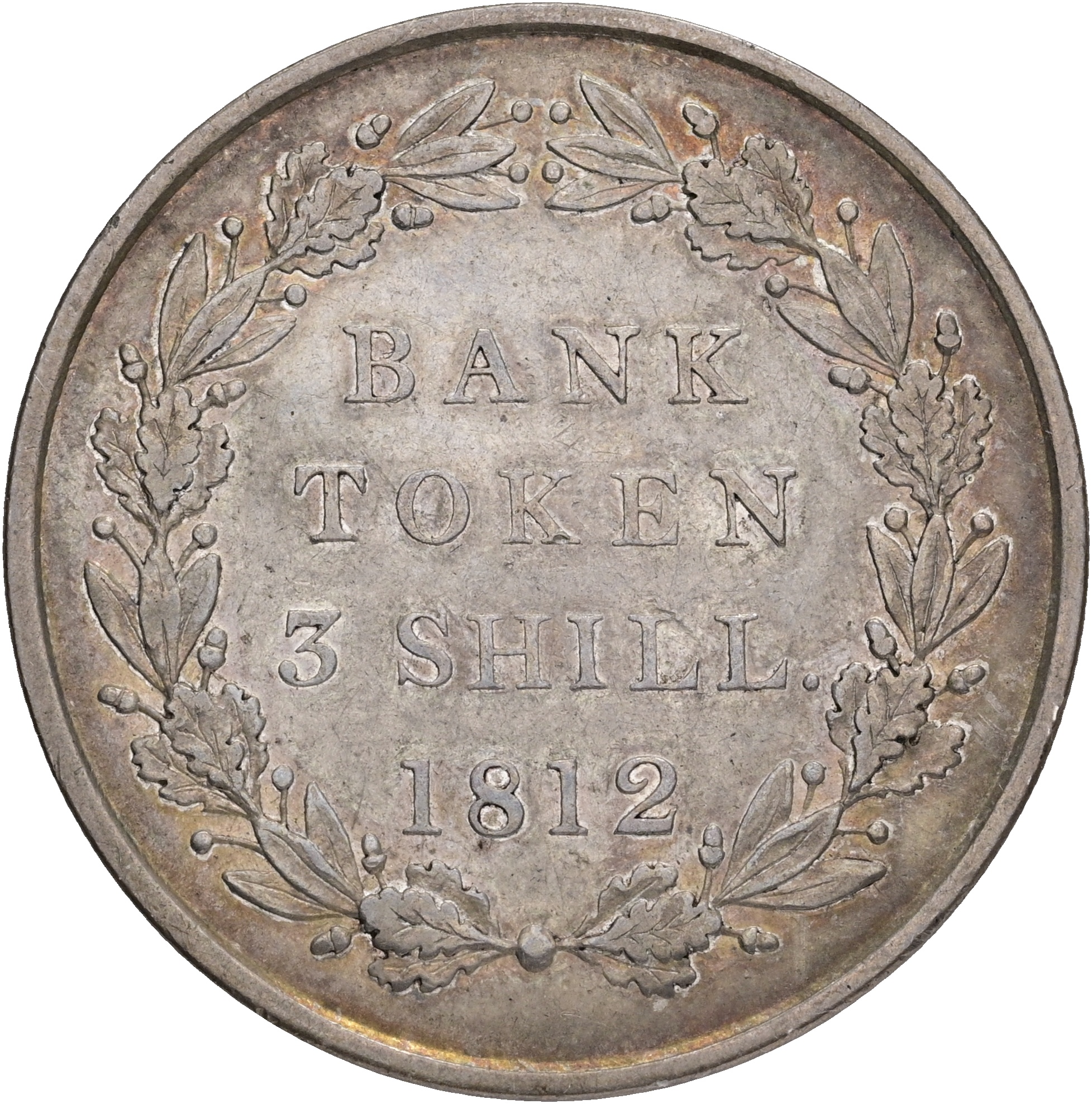 Great Britain, George III, Bank of England, Three Shillings 1812, S 3770, KM Tn 5, VF