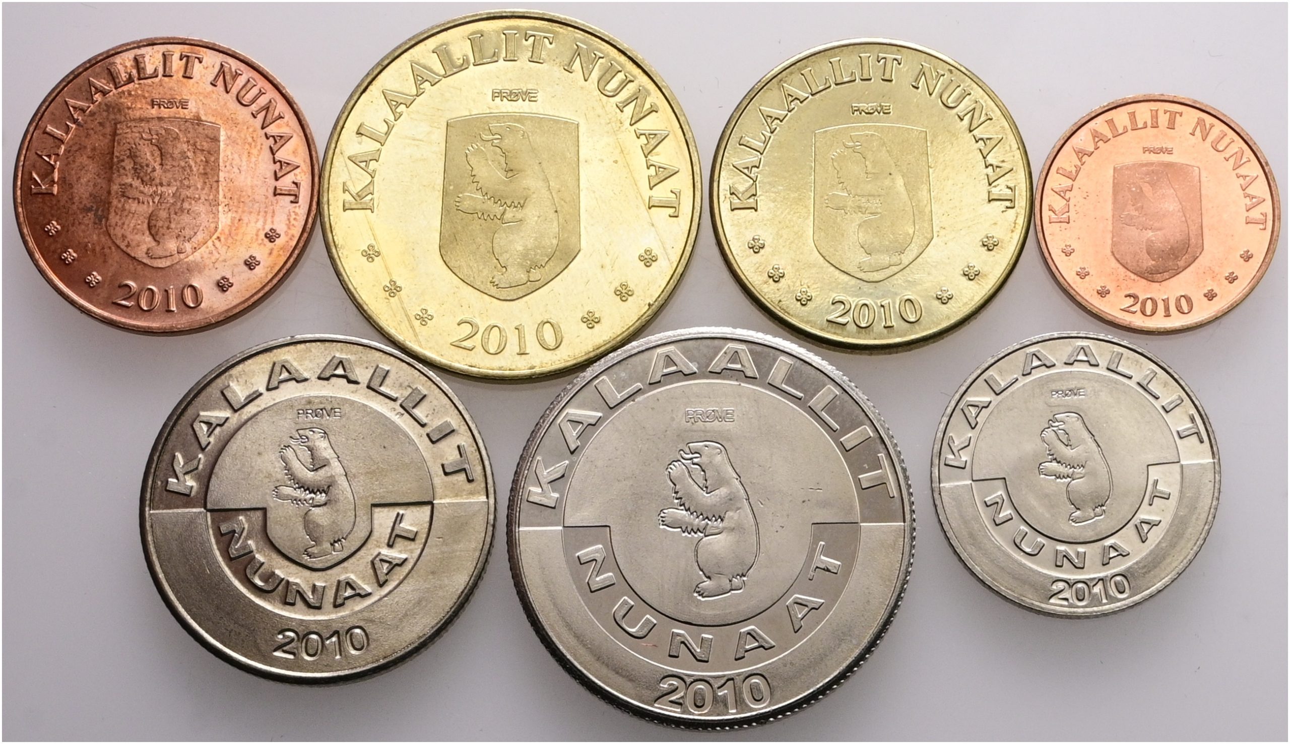 Grønland, uofficielle prøvemønter, 25 øre – 20 kroner 2010. (7)