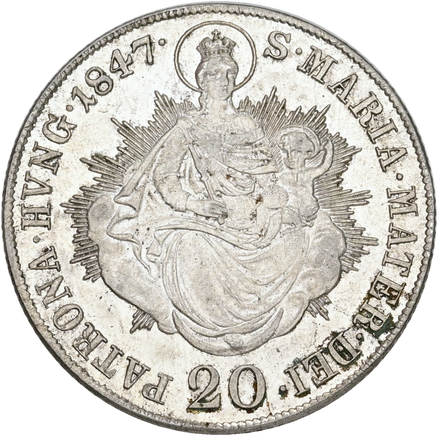 Hungary, Ferdinand V, 20 Kreuzers 1847 B, KM 422, AU