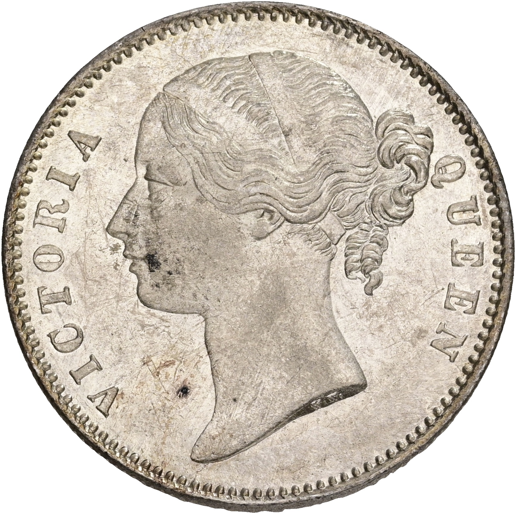 British East India Company, Victoria, Rupee 1840, KM 458, UNC, small scratches, spots.