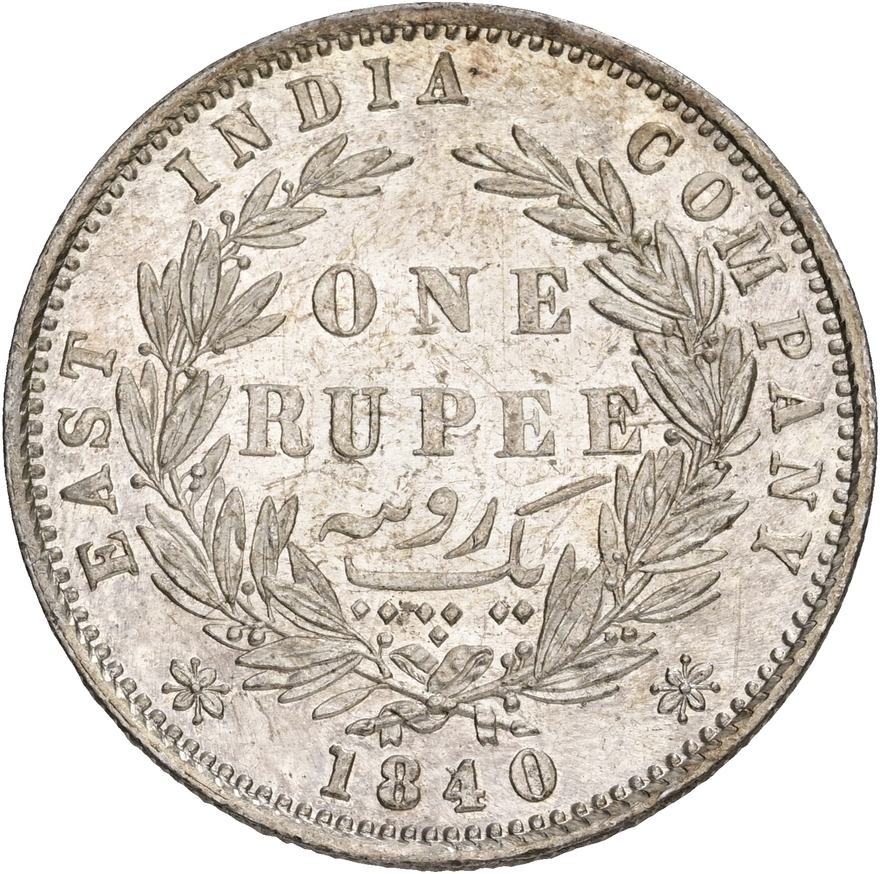 British East India Company, Victoria, Rupee 1840, KM 458, UNC