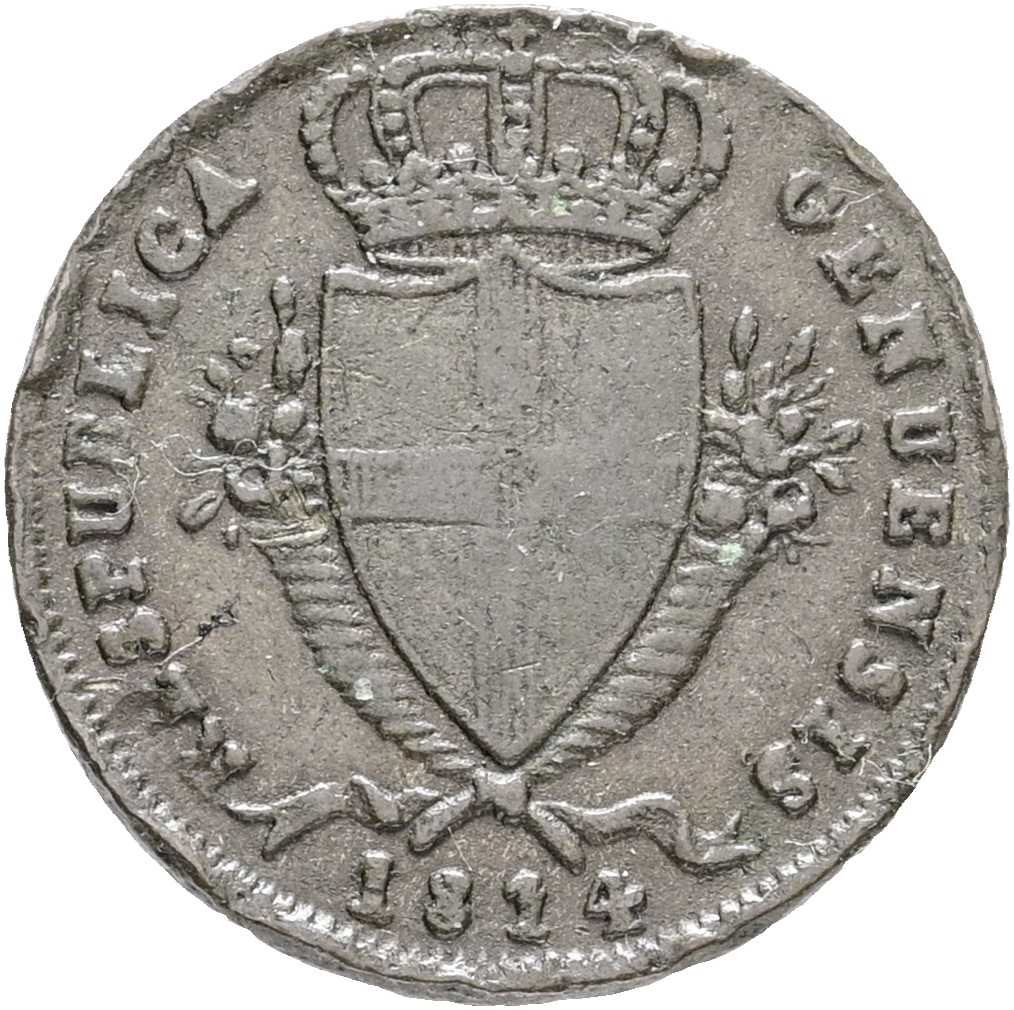 Italy, Genoa, 2 Soldi 1814, KM 282.1, VF