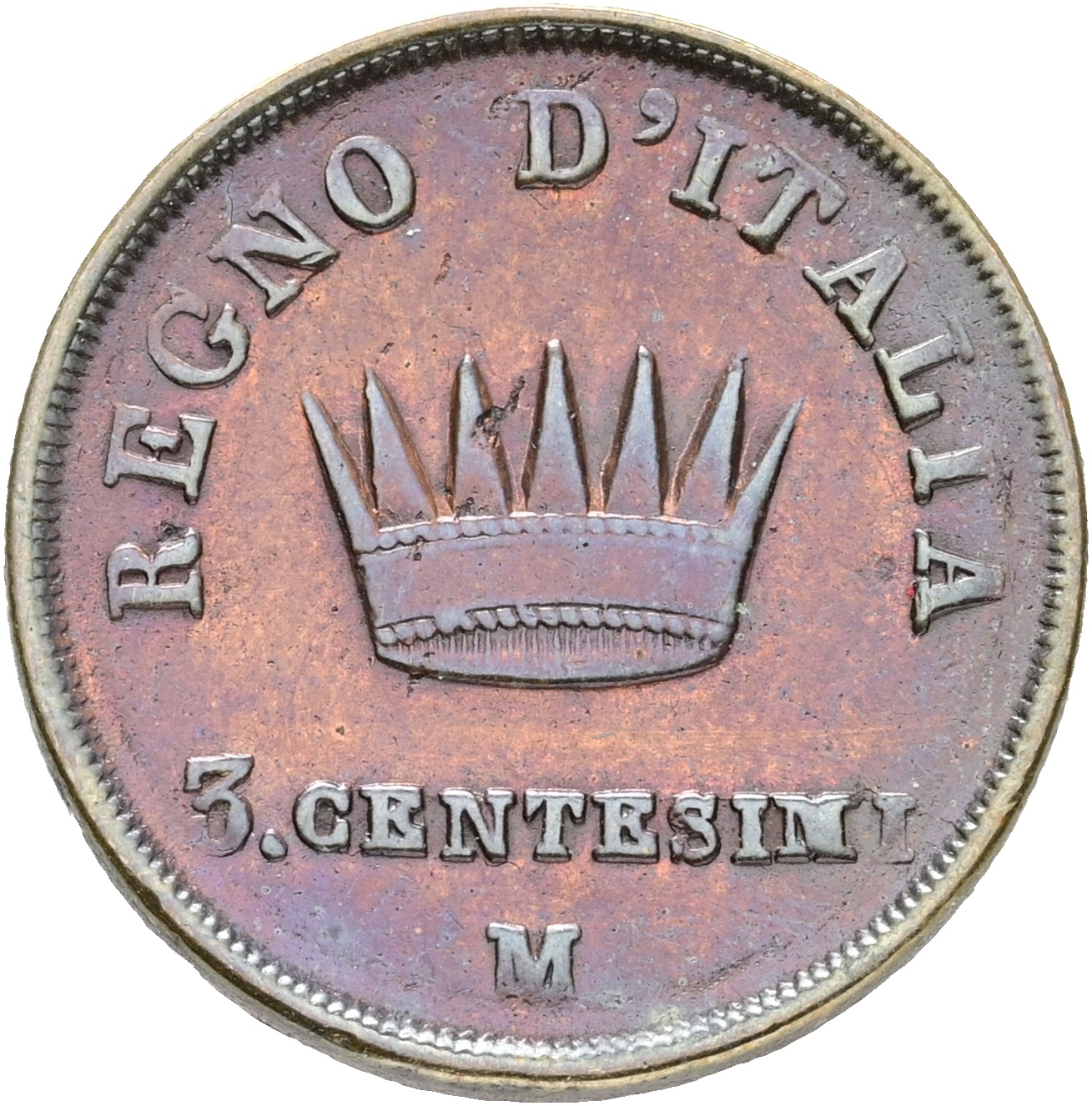 Italy, Napoleonic Kingdom, Napoleon I, 3 Centesimo 1813, Milano, C 2, VF-F, cleaned.
