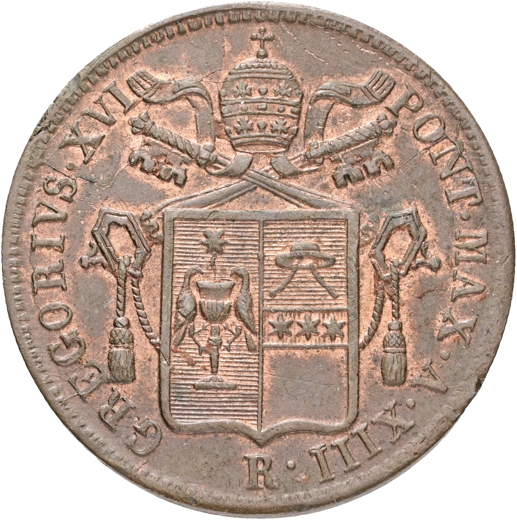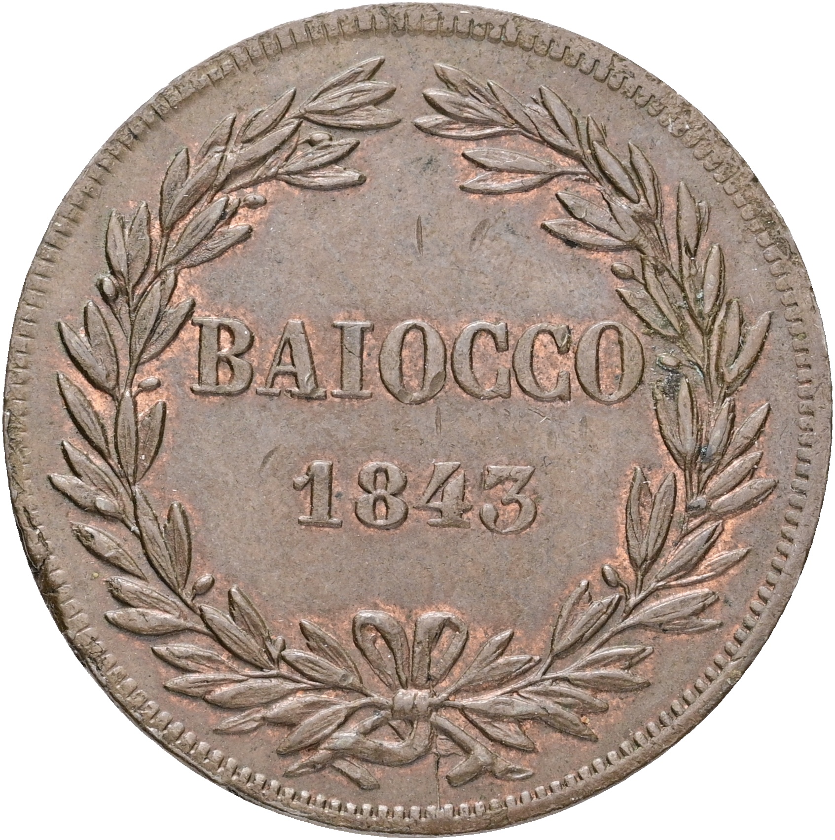Papal States, Gregory XVI (1831-1846), Baiocco 1843 R anno XIII, KM 1320, EF
