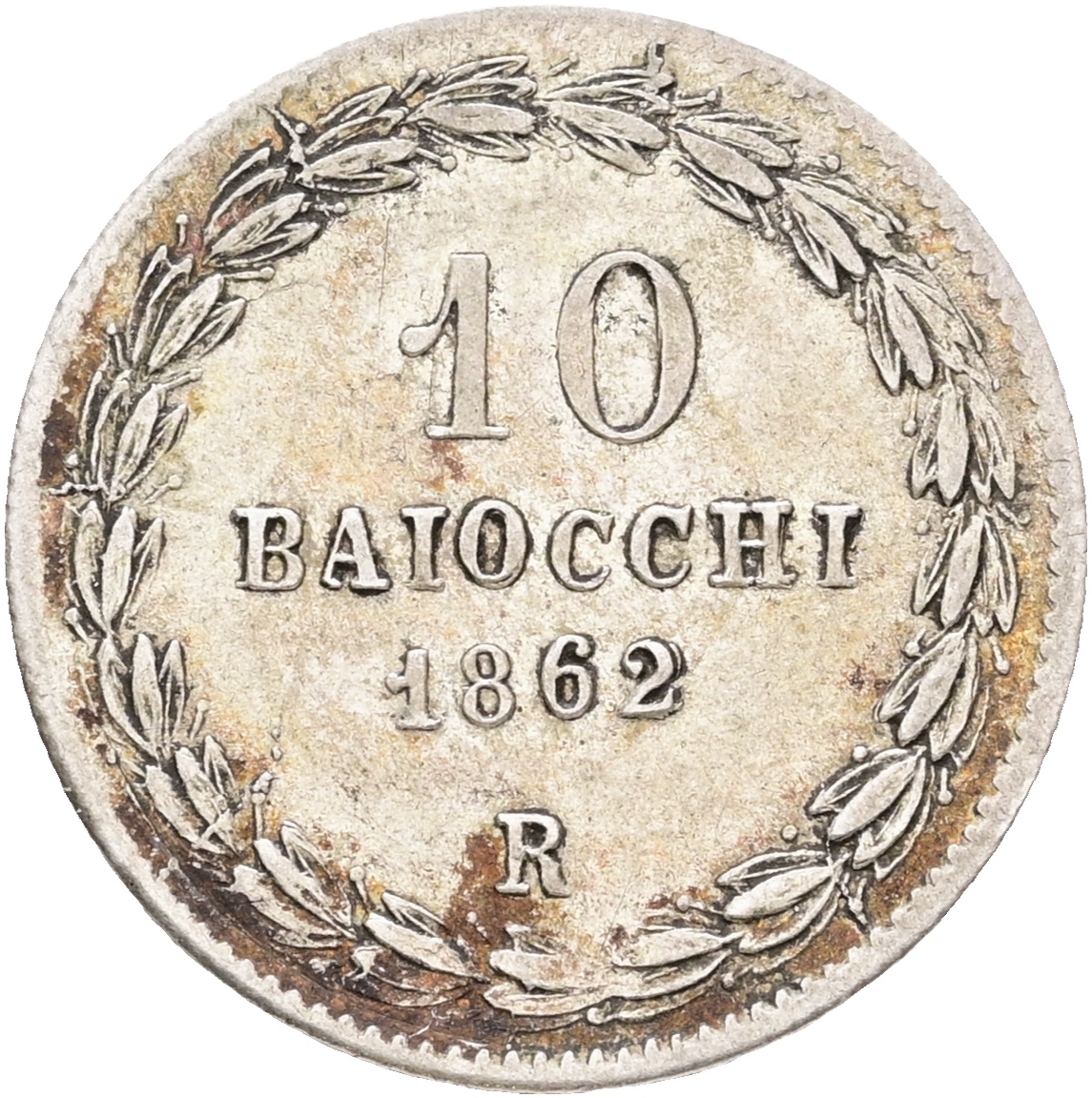 Papal States, Pius IX (1846-1878), 10 Baiocchi 1862 R anno XVII, KM 1342a, VF