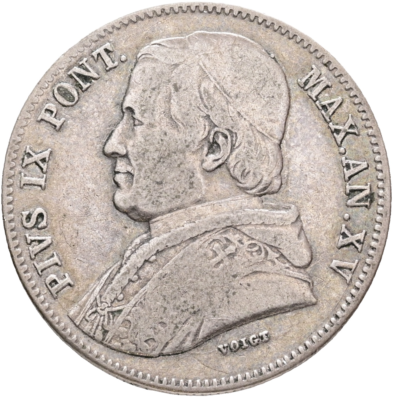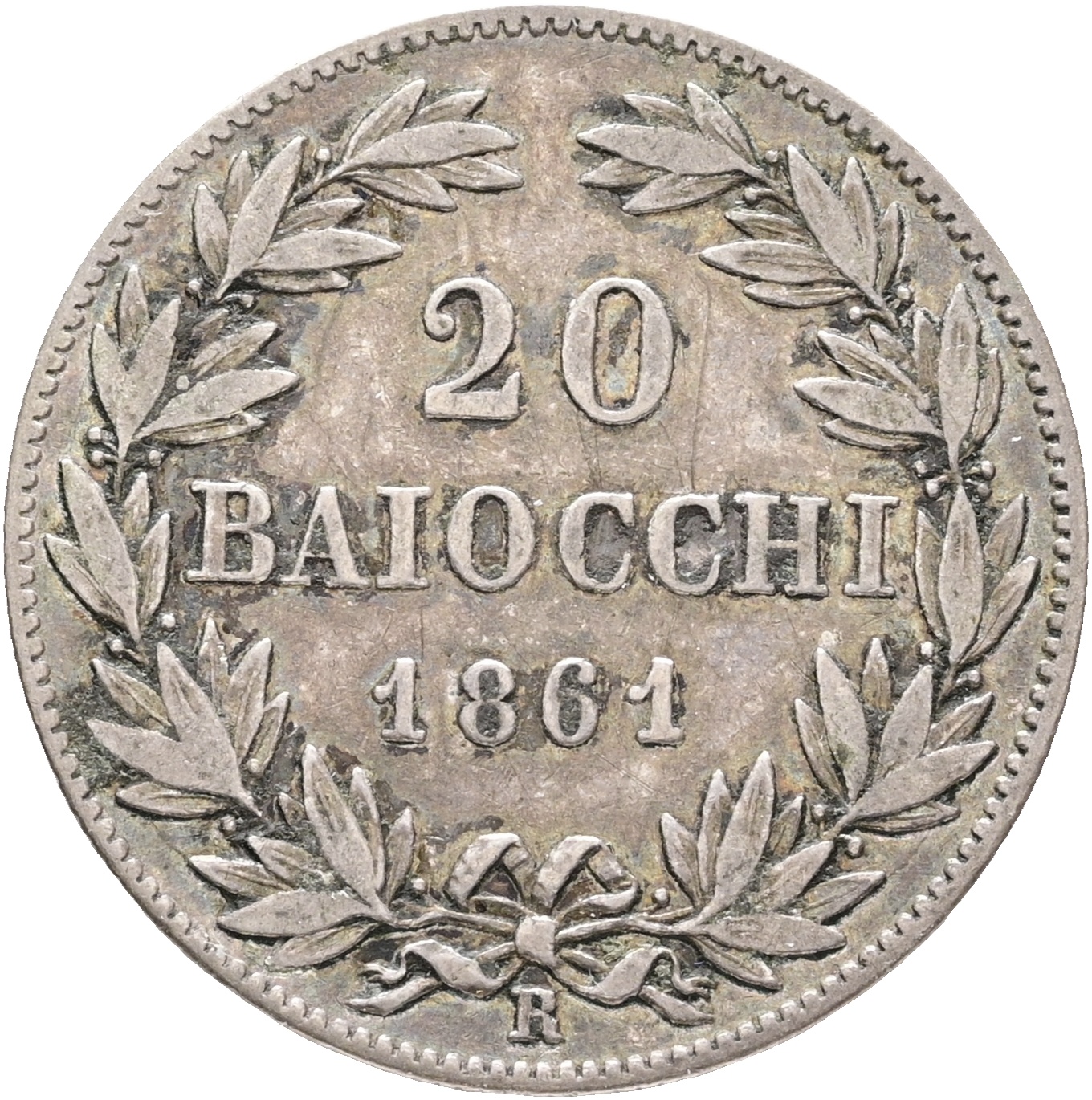 Papal States, Pius IX (1846-1878), 20 Baiocchi 1861 R anno XV, KM 1360, VF-F