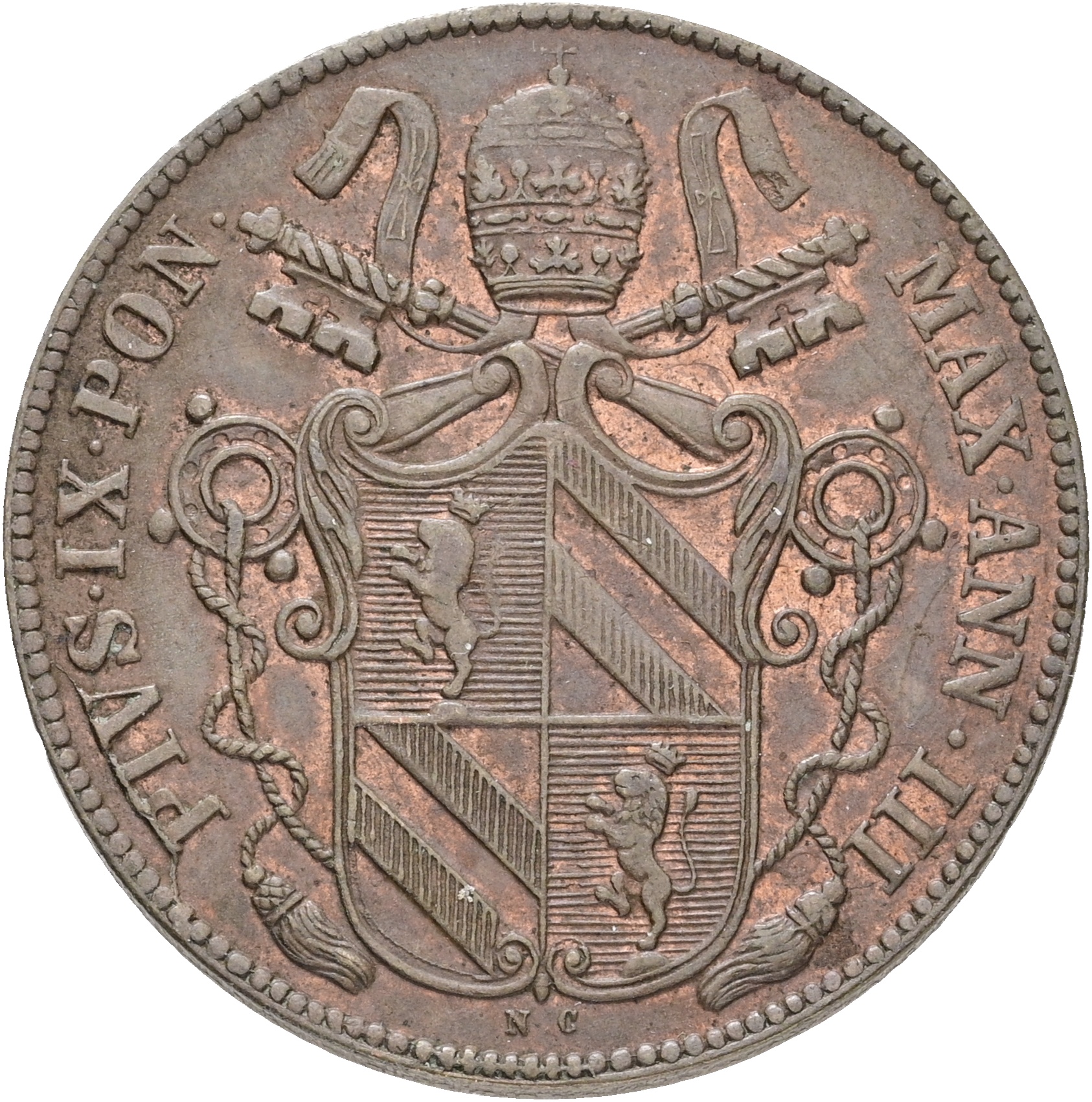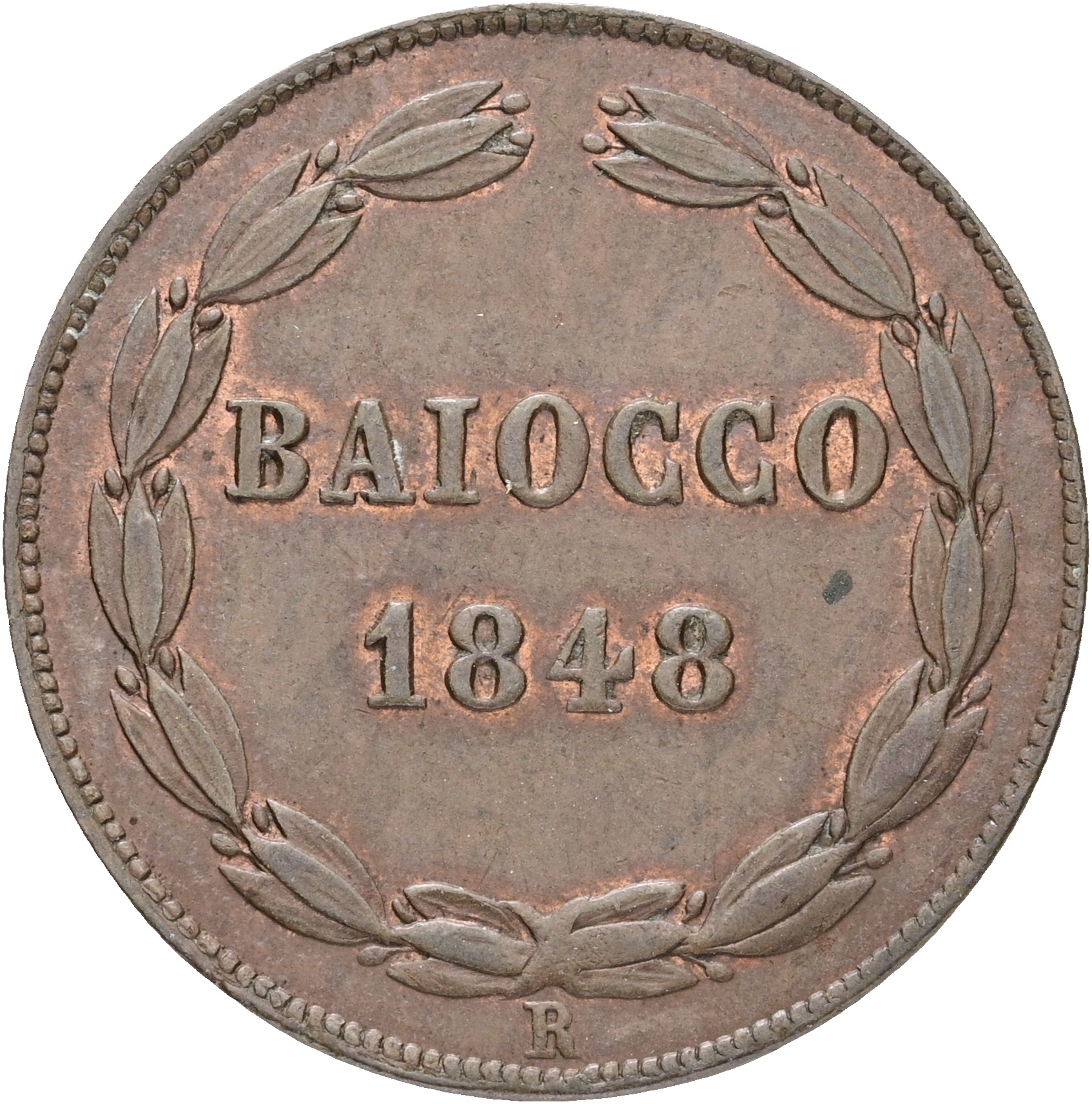 Papal States, Pius IX (1846-1878), Baiocco 1848 R anno III, KM 1339, EF-VF