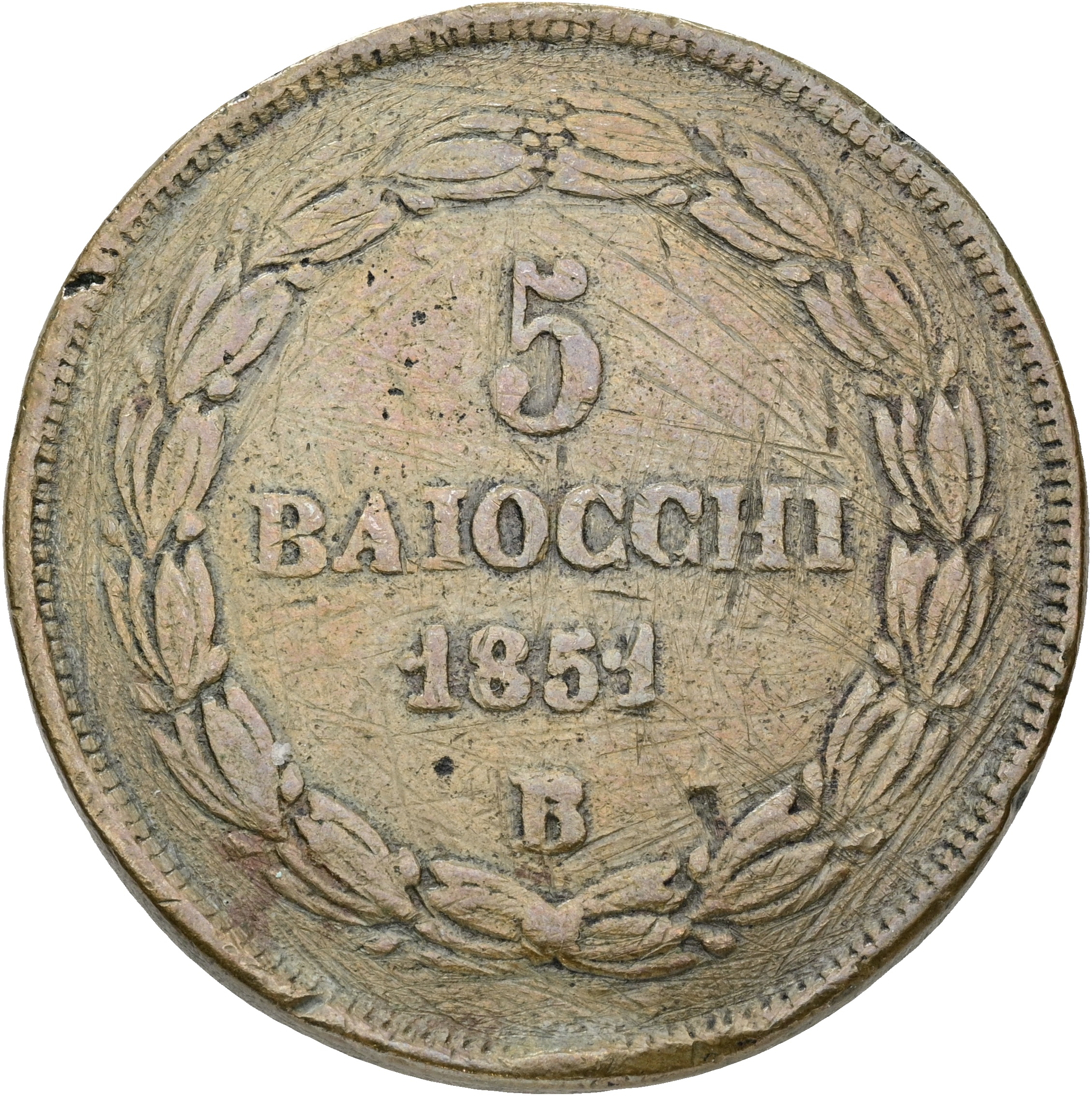Papal States, Pius IX, 5 Baiocchi 1851 B, KM 1356, F