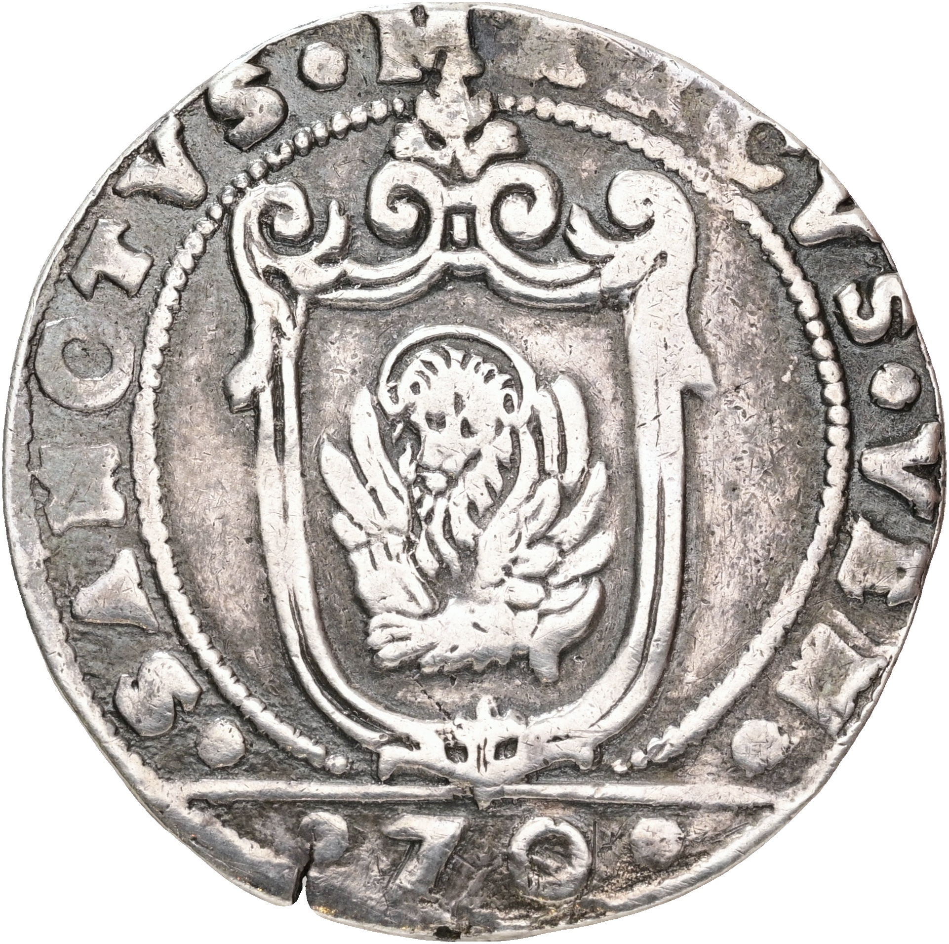 Italy, Venice, Antonio Priuli (1618-1623), 1/2 Scudo / 70 Soldi ND (1618-1620) GR, KM  96, VF, traces of mounting.