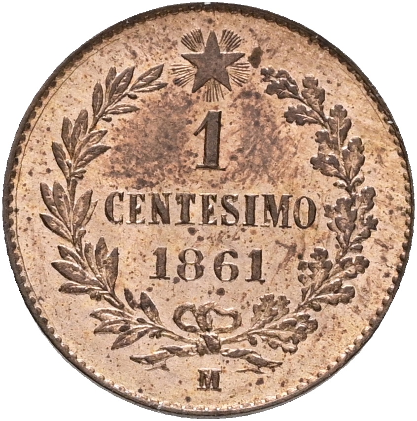 Italy, Vittorio Emanuele II, 1 Centesimo 1861 M, KM 1.1, UNC