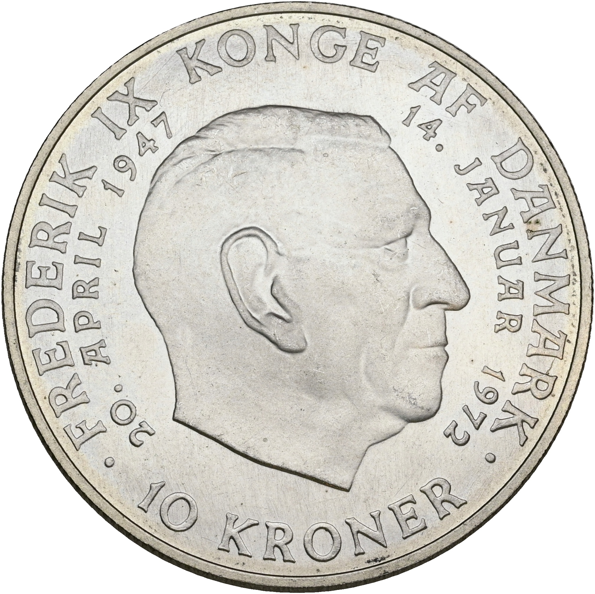 Margrethe II, 10 kroner 1972, tronskiftet, Sieg 16, kv. 0