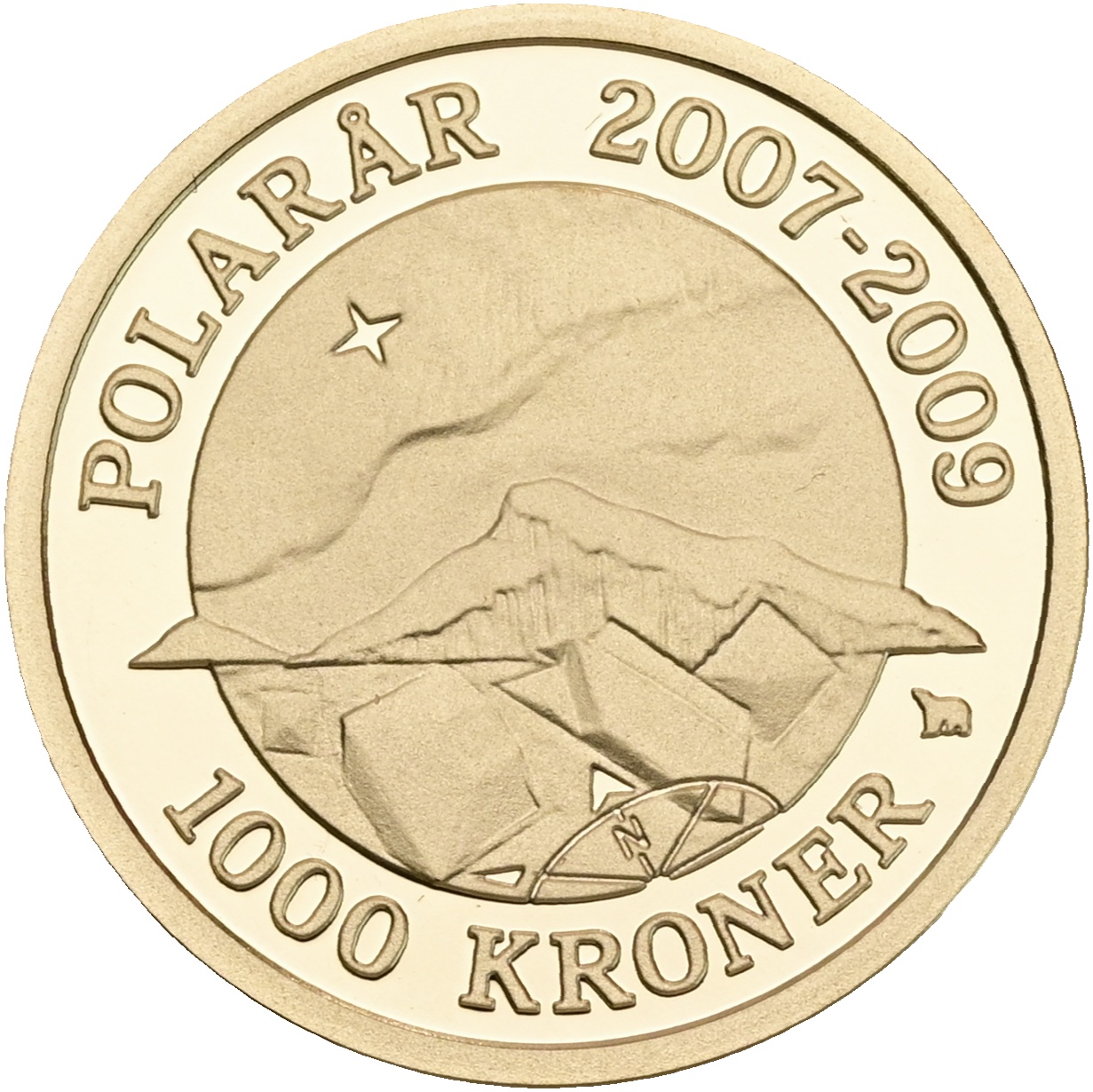 Margrethe II, 1000 kroner 2009, Nordlys, Polarår, Au (900/1000), 8,65 g, Sieg 3B, F 308, Proof, i uoriginal kapsel, uden æske og certifikat.