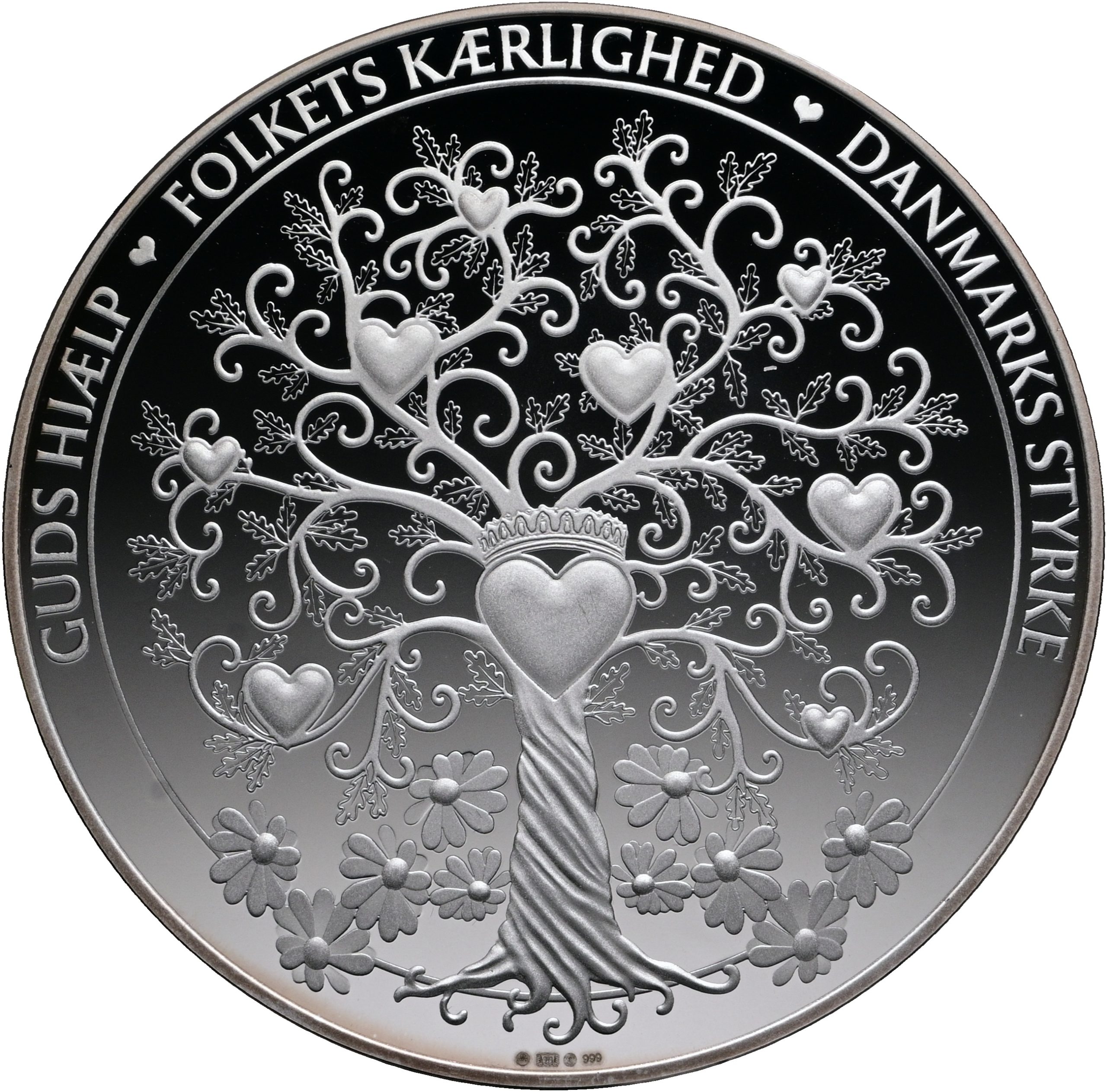 Margrethe II, 50 års regeringsjubilæum, 2022, Ag (999/1000), 80 mm, 100 g, kv. Proof – præget i 500 eksemplarer.