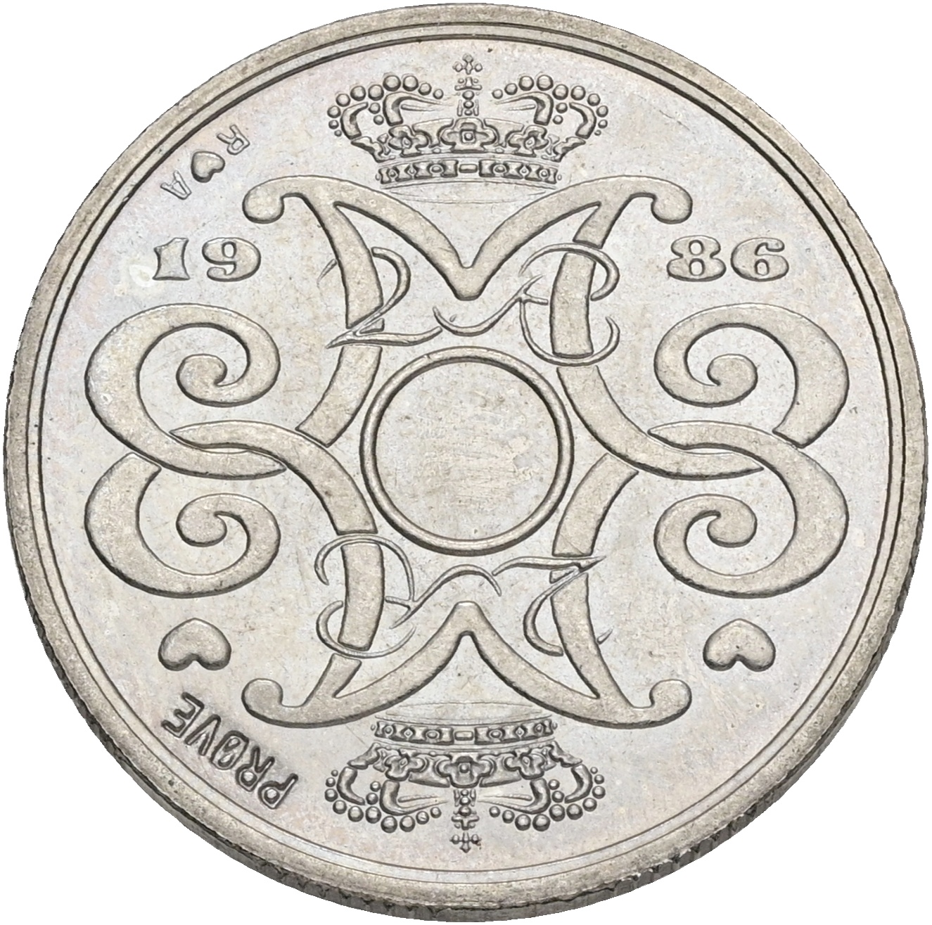 Margrethe II, prøvemønt, 2 kroner 1986, GP 34b, riflingsforsøg f (8×8 riller, prægering 328), kv. 0-01