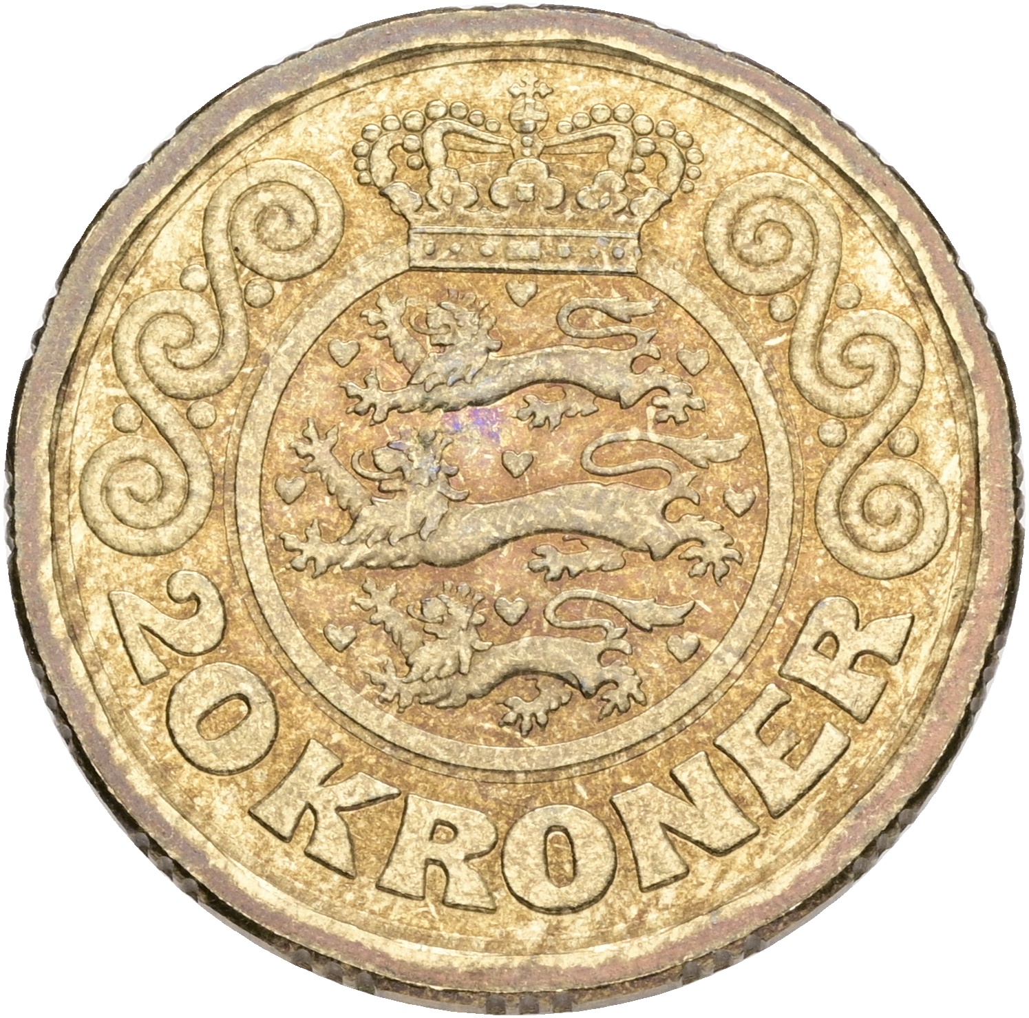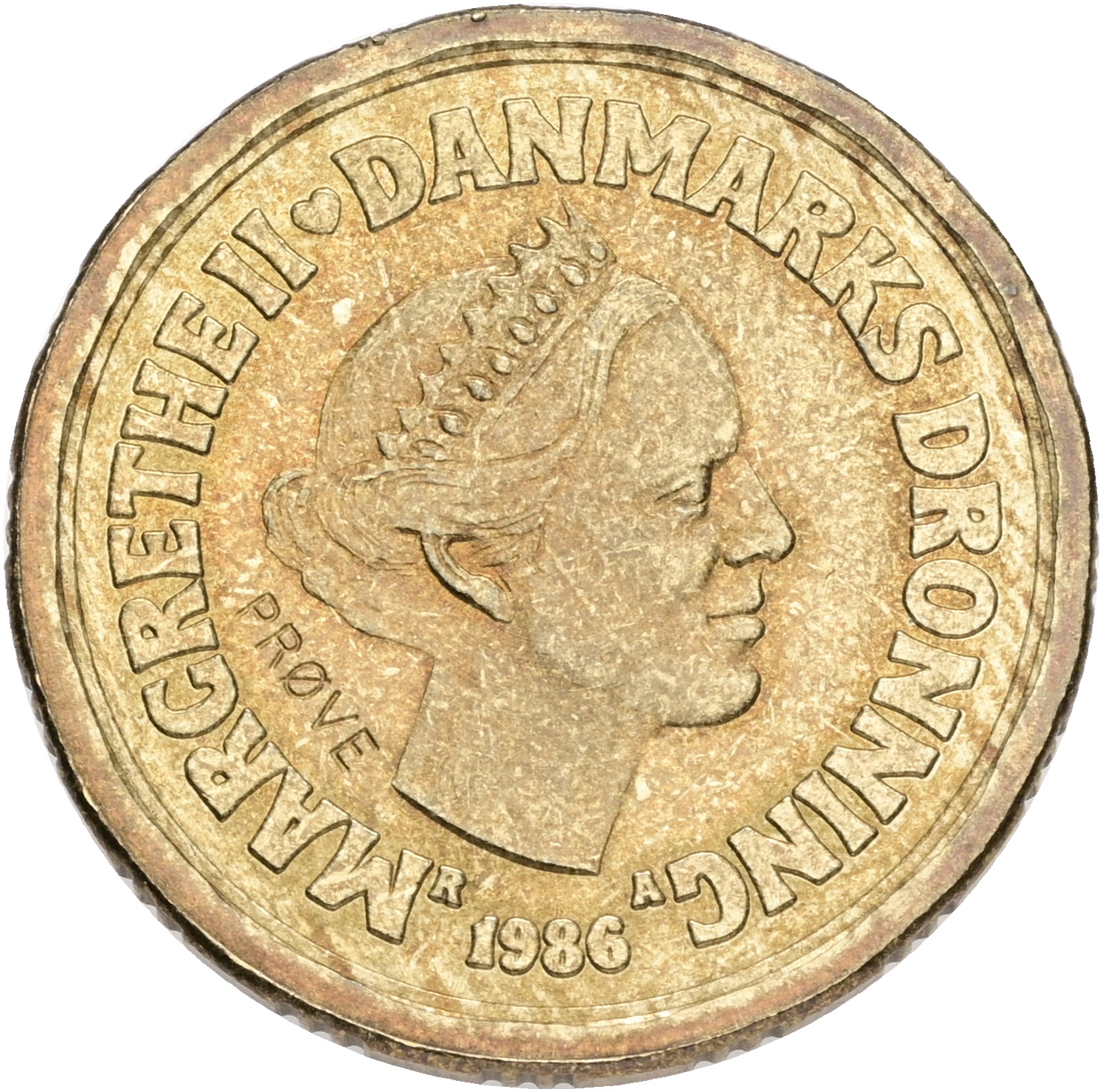 Margrethe II, prøvemønt, 20 kroner 1986, GP 37b, riflingsforsøg d (16×3 riller, prægering 331), kv. 01