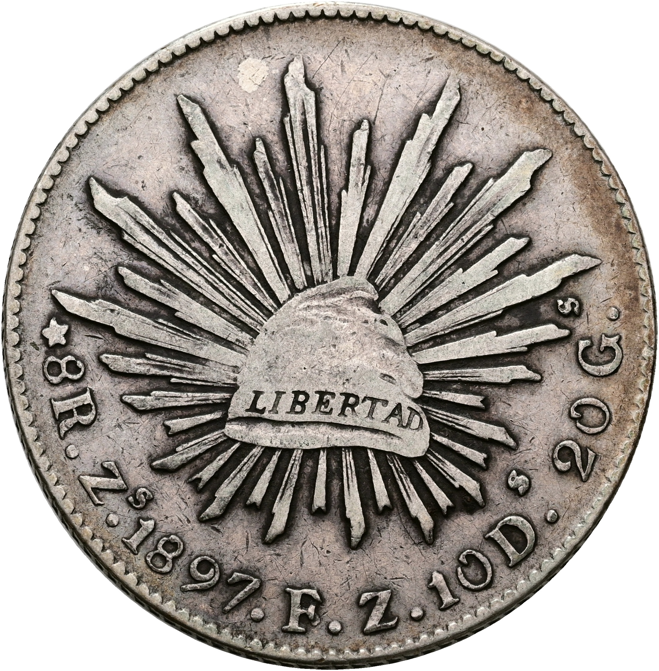 Mexico, 8 Reales 1897 Zs FZ, KM 377.13, VF-F.
