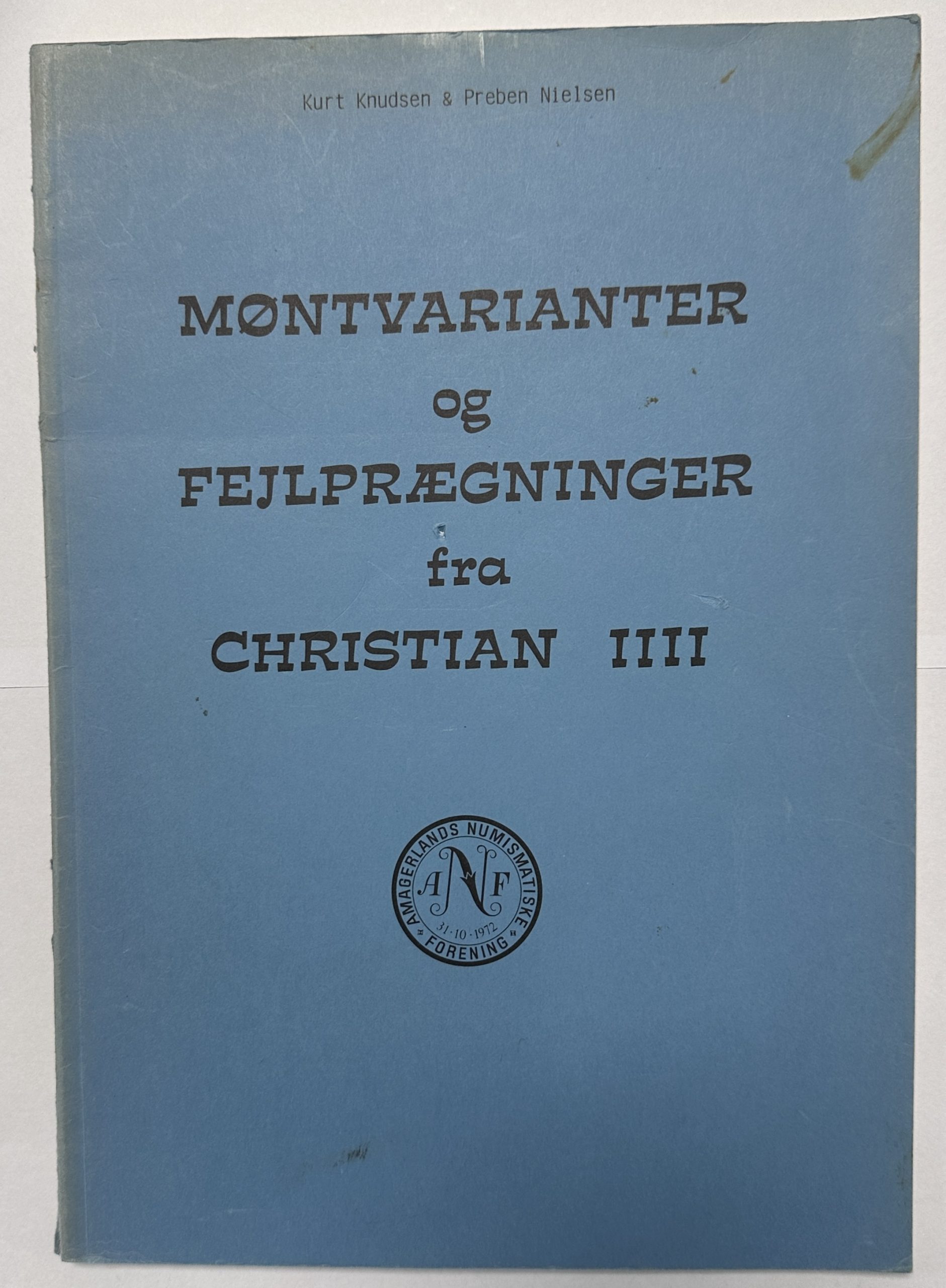 Møntvarianter og fejlprægninger fra Christian IIII, af Knudsen & Nielsen, 1982, 64 sider, brugt