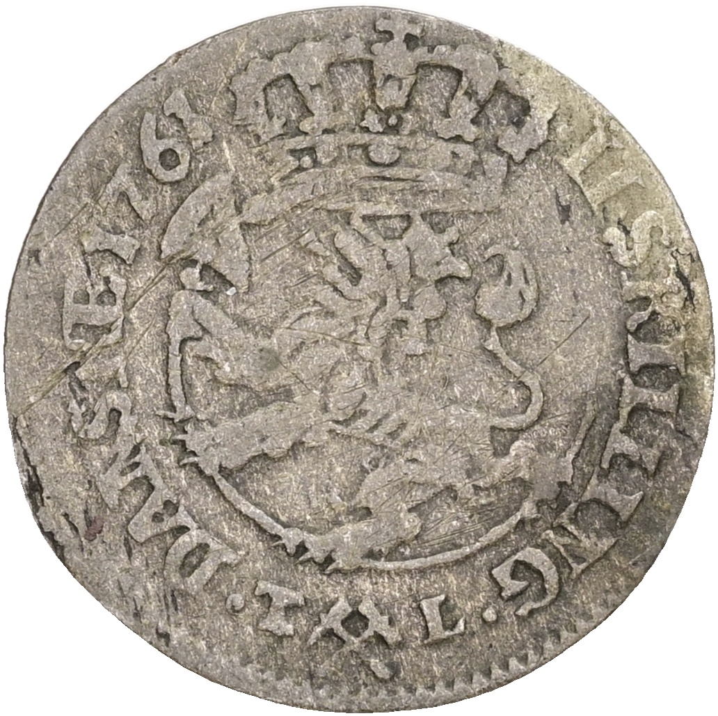 Norge, Frederik V, 2 Skilling 1761 NMD 26, Sieg 2.2, kv. 1