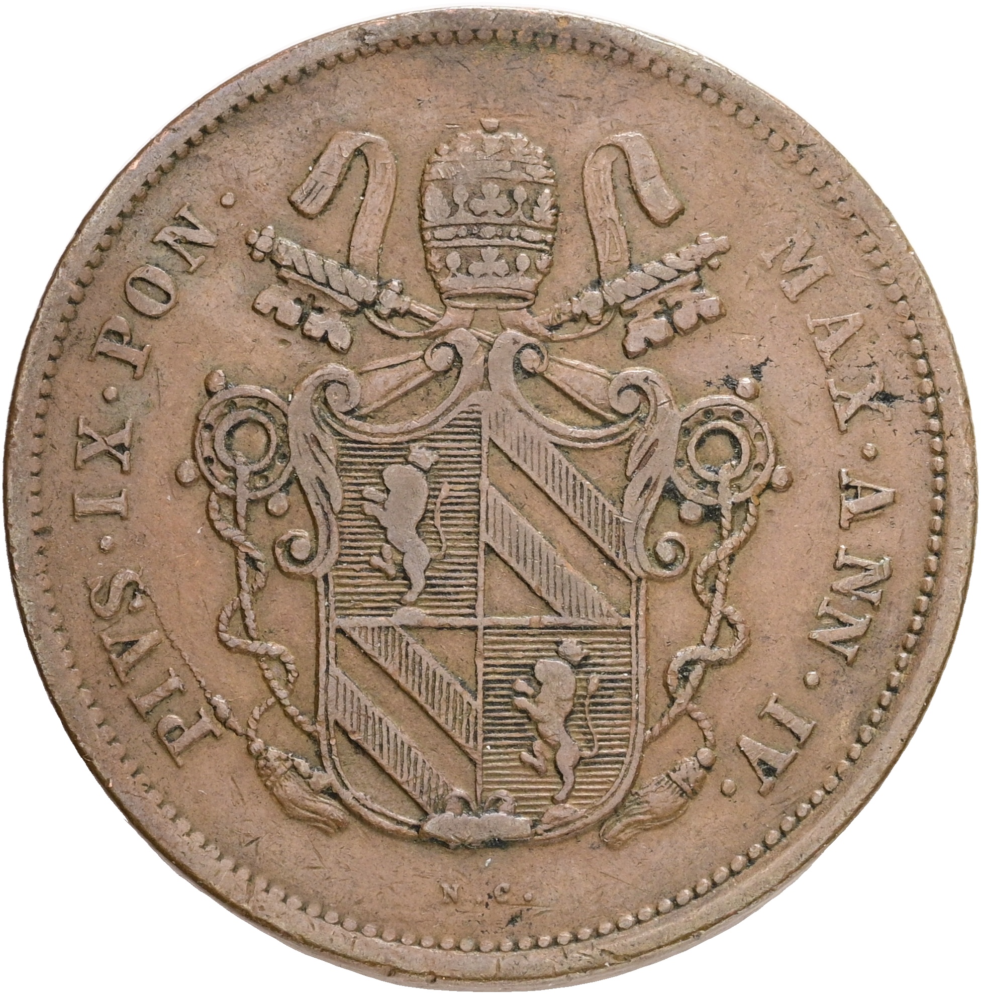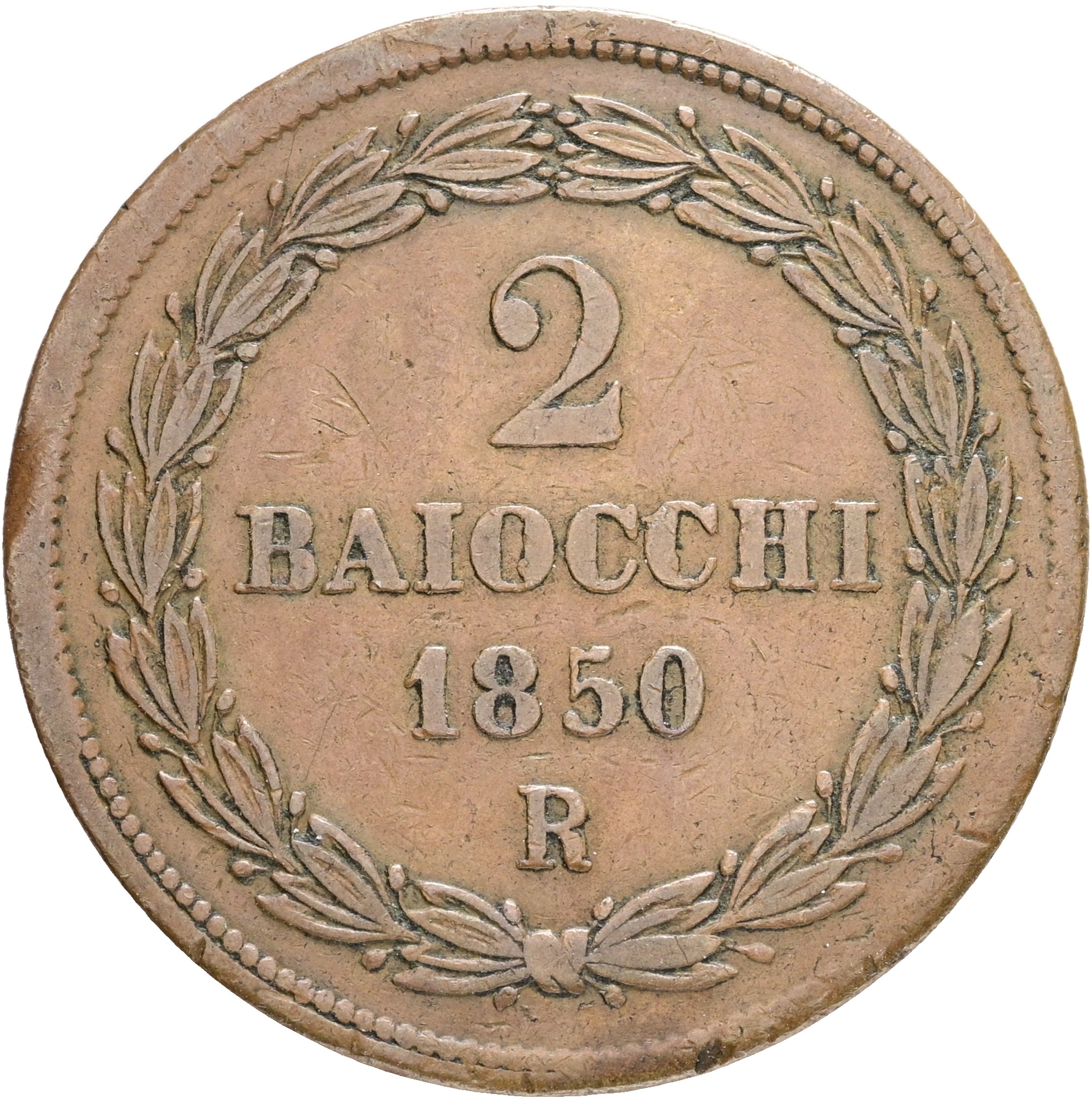 Papal States, Pius IX, 2 Baiocchi 1850, KM 1344, VF, small edge nicks.