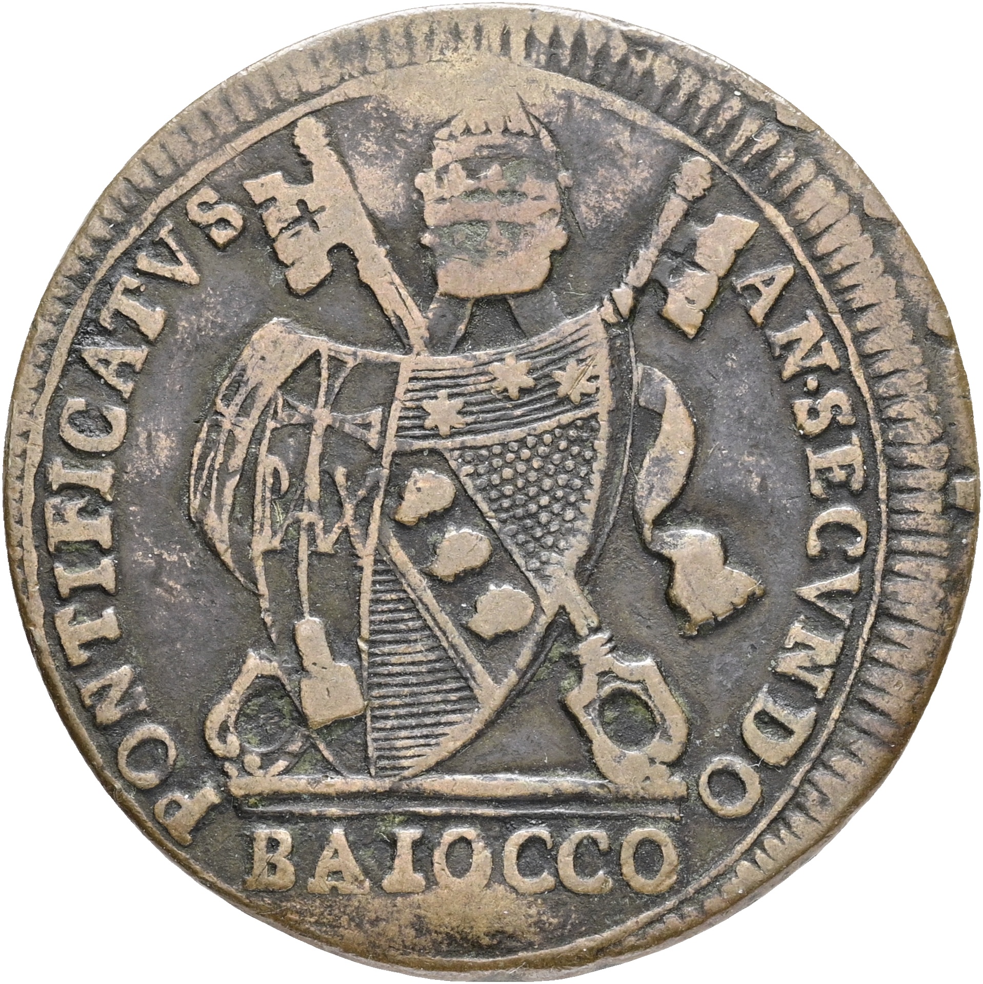 Papal States, 2 Baiocchi 1850 V, KM 1344, F