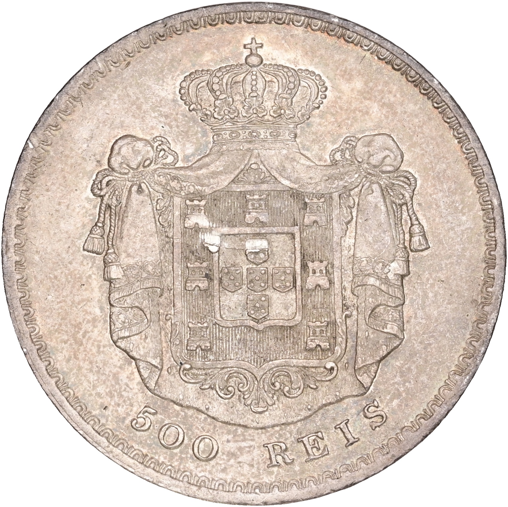 Portugal, Pedro V, 500 Reis 1855, KM 494, EF