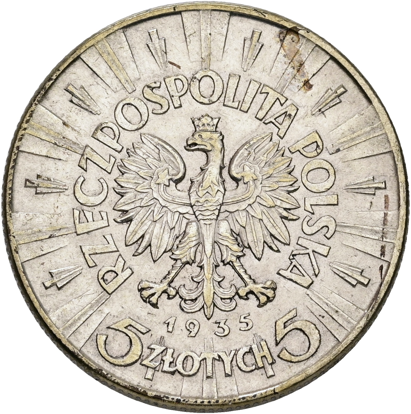 Poland, 5 Zlotych 1935, Y 28, AU-EF
