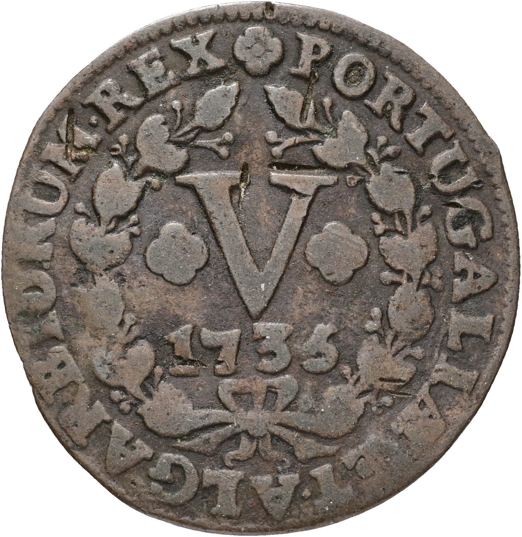 Portugal, João V (1706-1750), 5 Reis 1735, KM 216, VF-F, nicks.