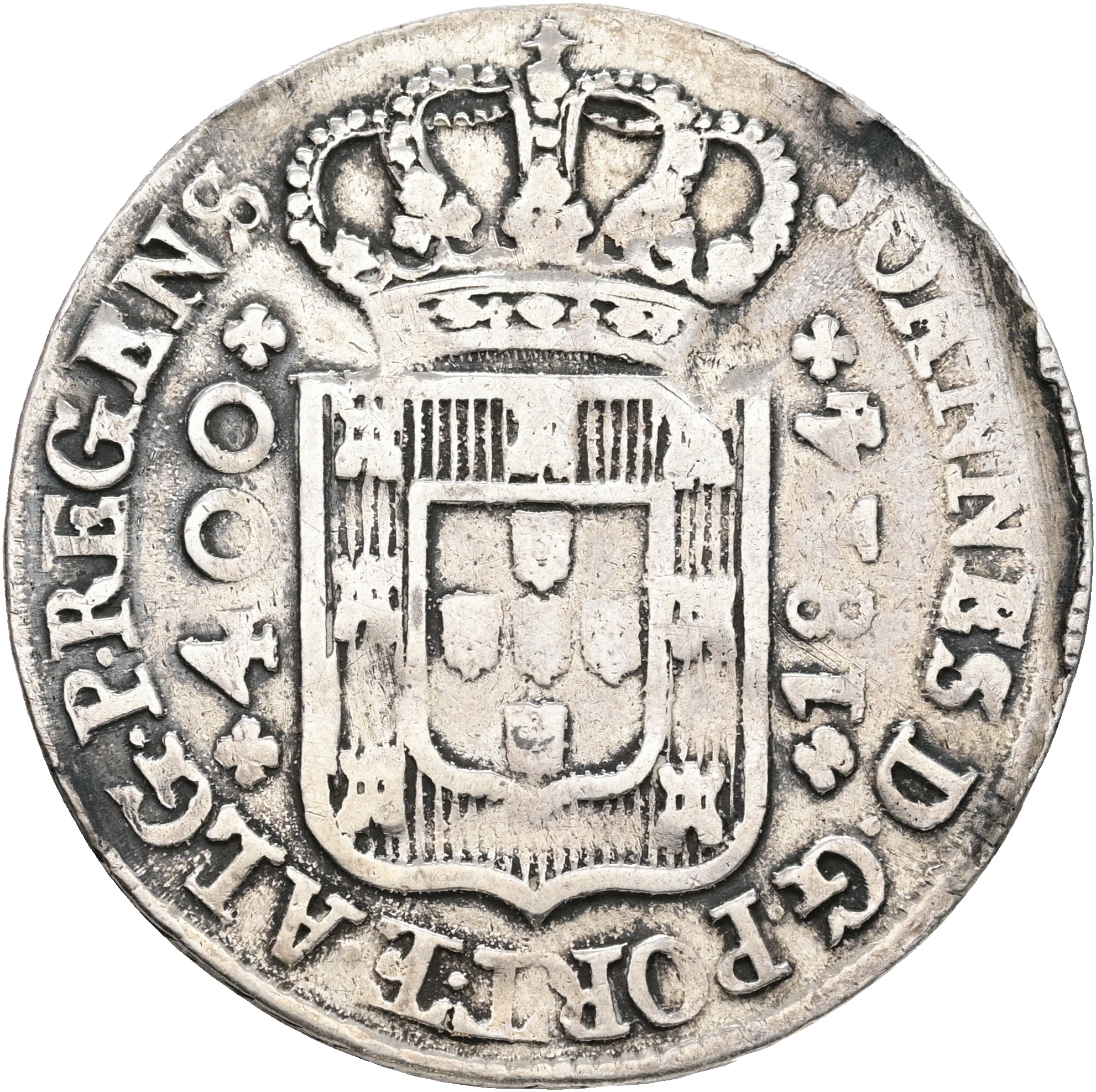 Portugal, João VI, Cruzado Novo 1814, KM 331, VF-F, traces of mounting, cleaned.
