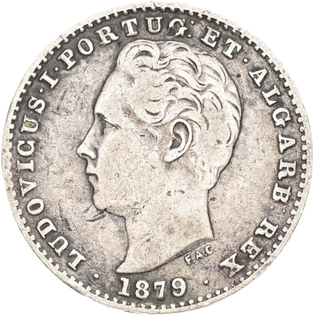 Portugal, Luiz I, 100 Reis 1879, KM 510, VF-F