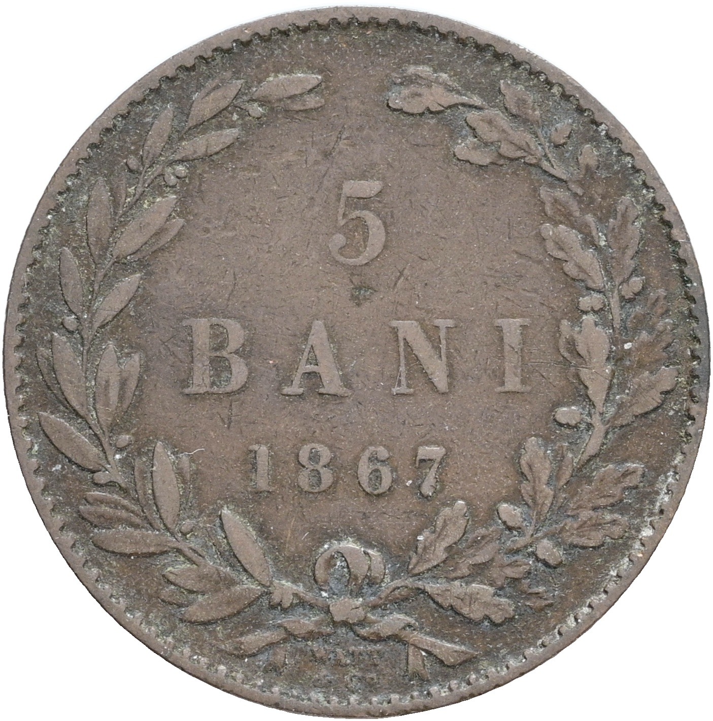 Romania, Carol I (1866-1914), 5 Bani 1867, KM 3.2, VF-F