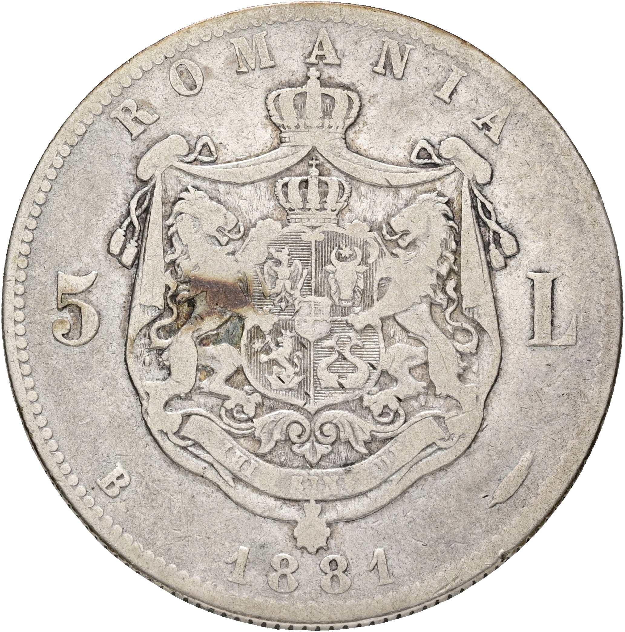 Romania, Carol I (1866-1914), 5 Lei 1881, KM 12, F-VG
